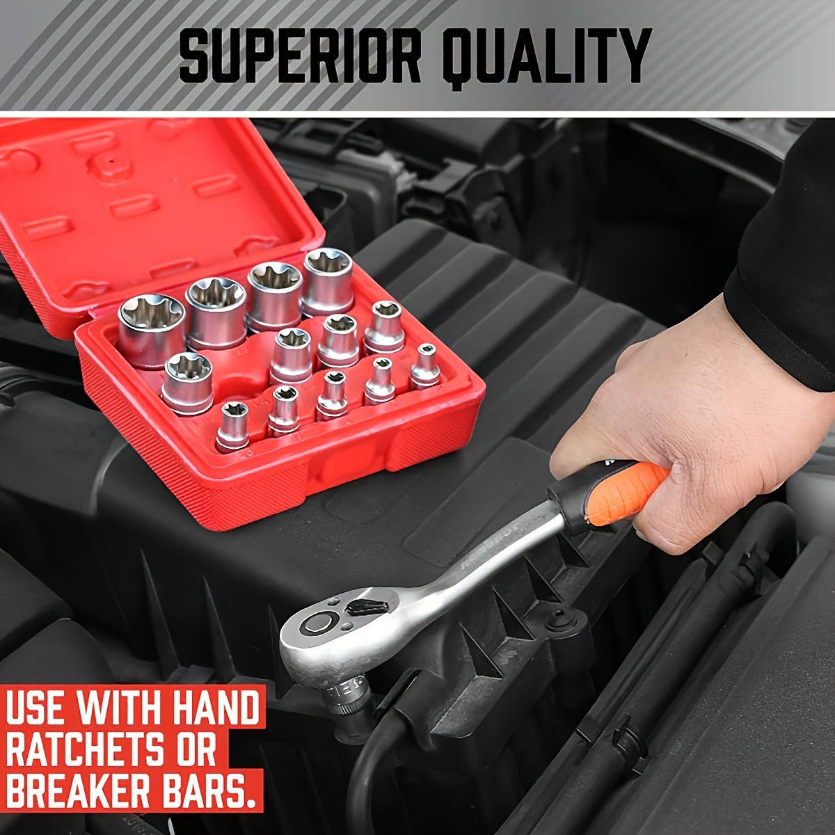 14pcs Hexagon Flower Key Star Type Socket Combination Auto Repair Tool Torx Type Socket