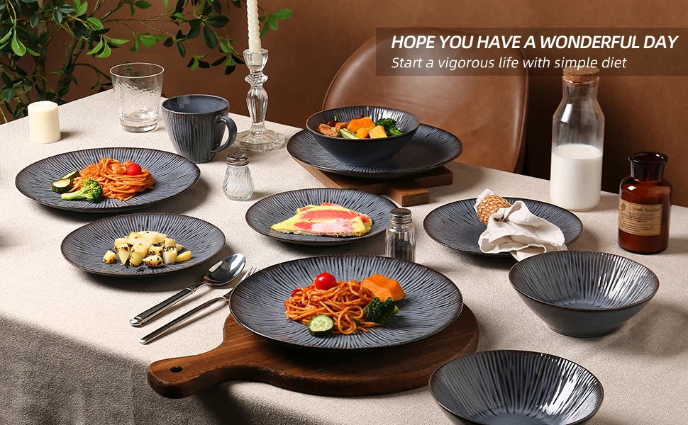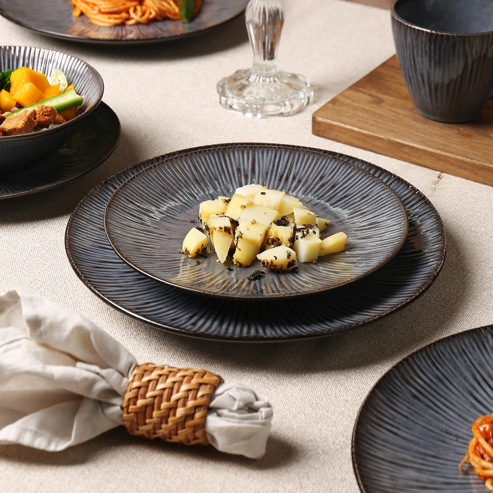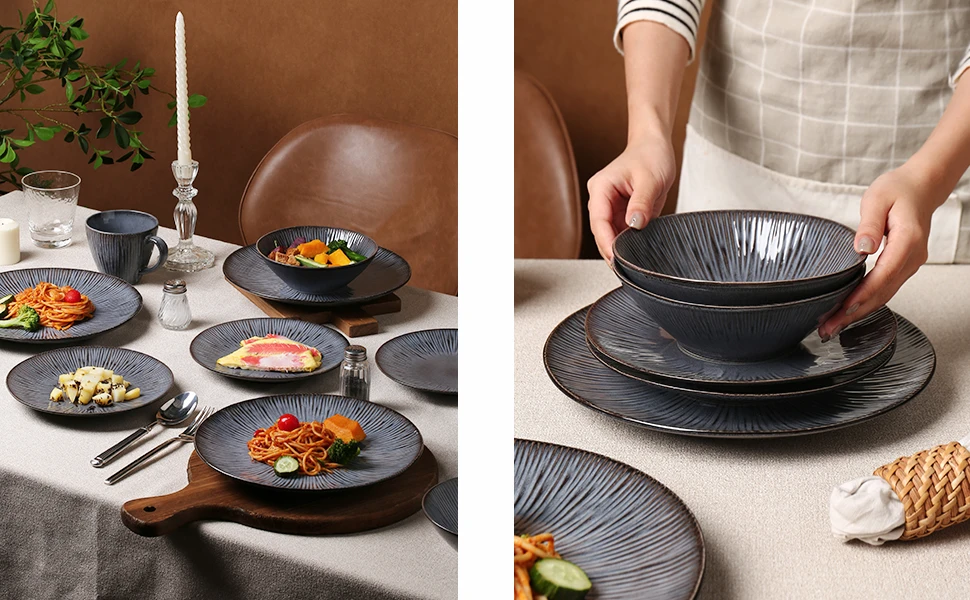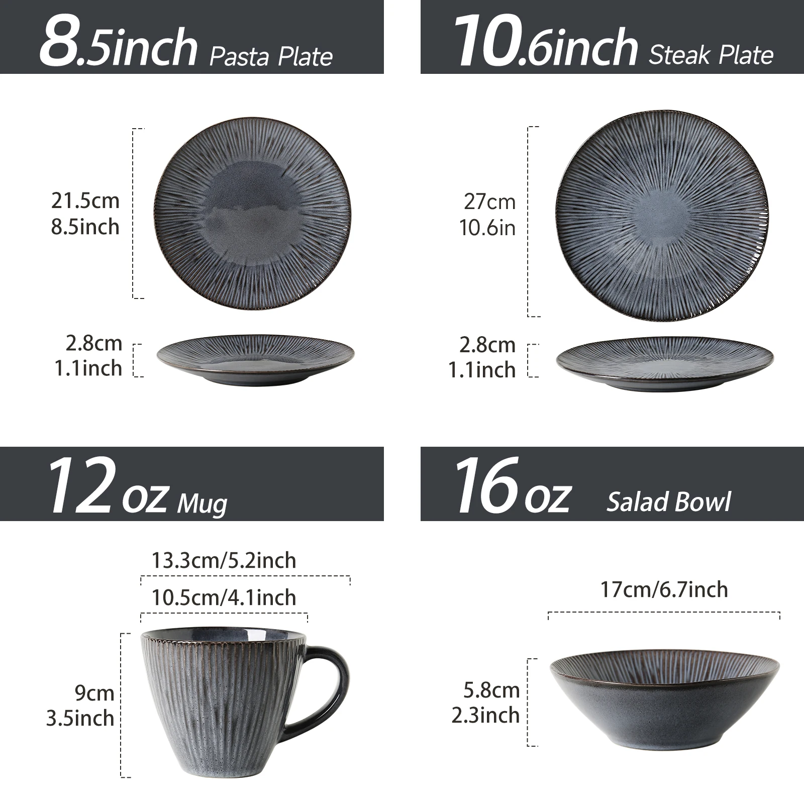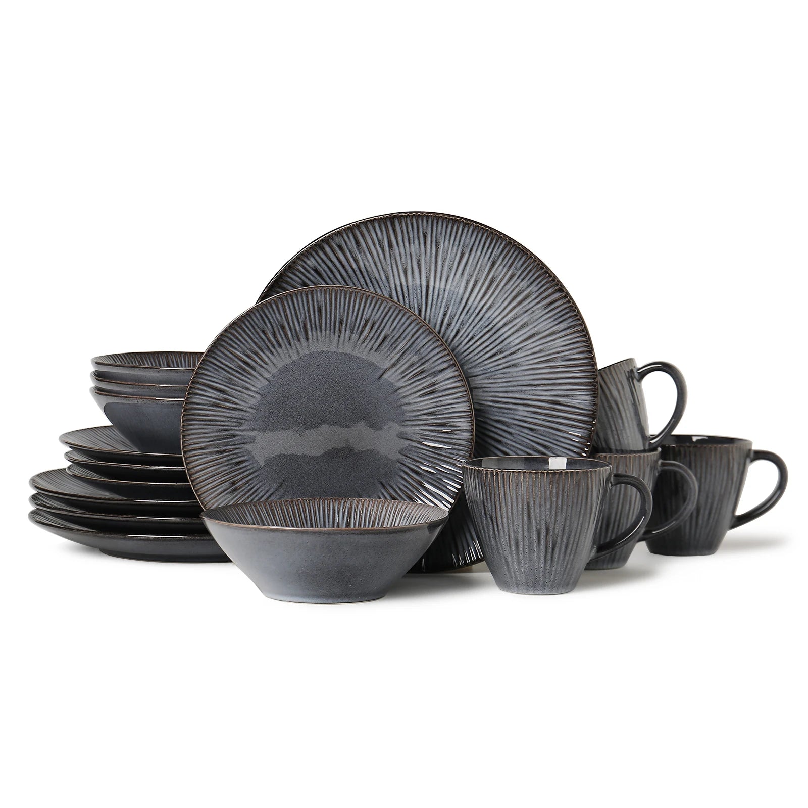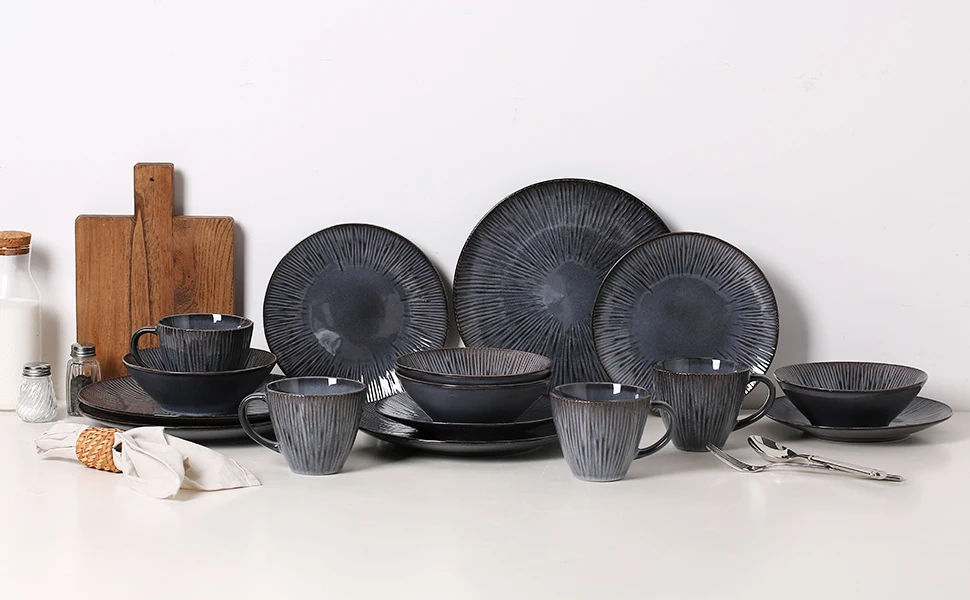 16-Piece Stoneware Black Dinnerware Set Ceramic Cups Bowls and Plates Porcelain Tableware USA Warehouse In-Stock