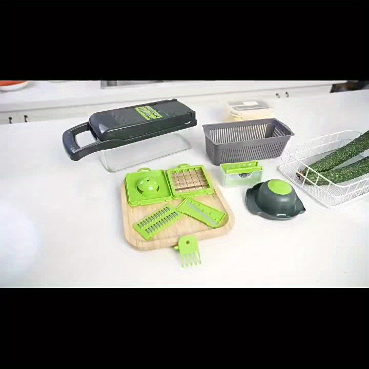 16pcs All-in-One Vegetable & Onion Chopper Set with Drainage Basket - Heavy-Duty Manual Food-Grade Stainless Steel Kitchen Chopper with Carrot, Garlic, Potato, Onion, And More - Ideal For Home, Restaurant, Rv, And Kitchen Use