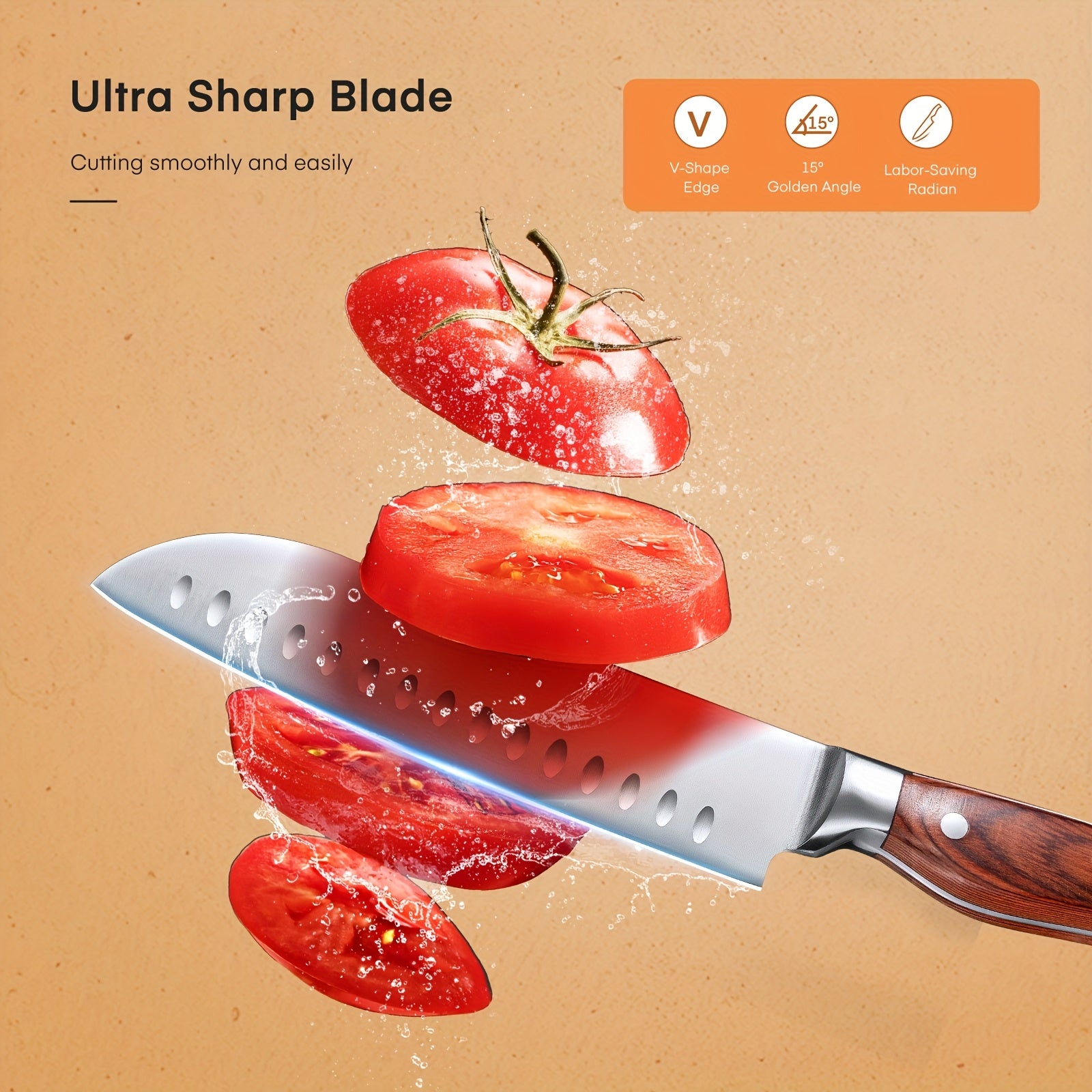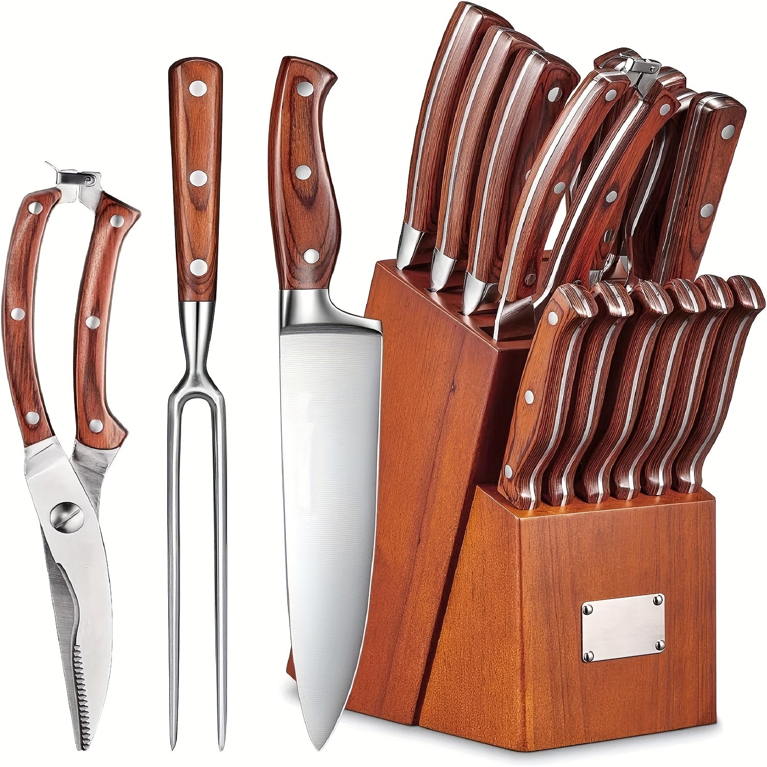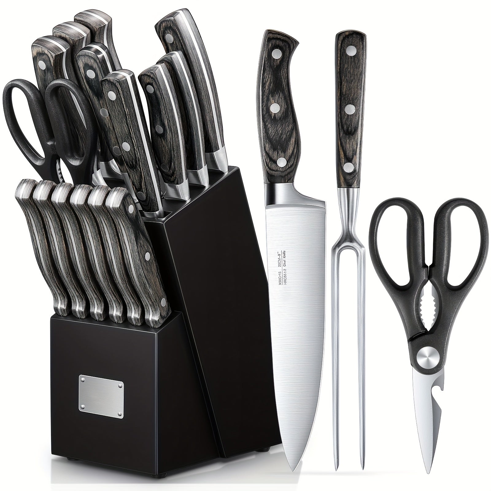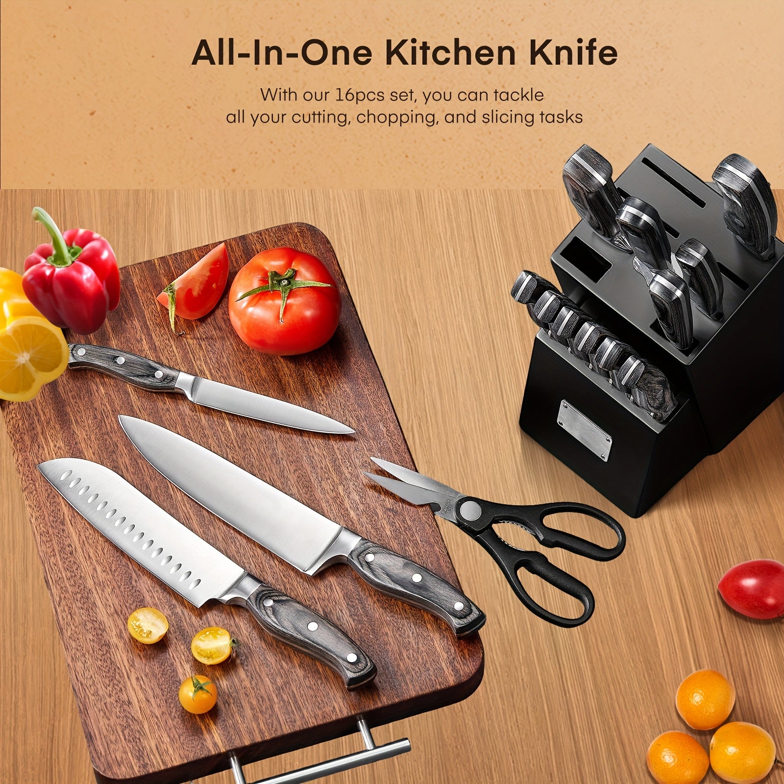 16pcs Knife Set, With Wooden Handle, Stainless Steel Chef'S Knife Set With Wooden Block, Professional Kitchen Knife With Sharpening Steel, Ideal Christmas Gift For Mother, Friend, Brown/Black