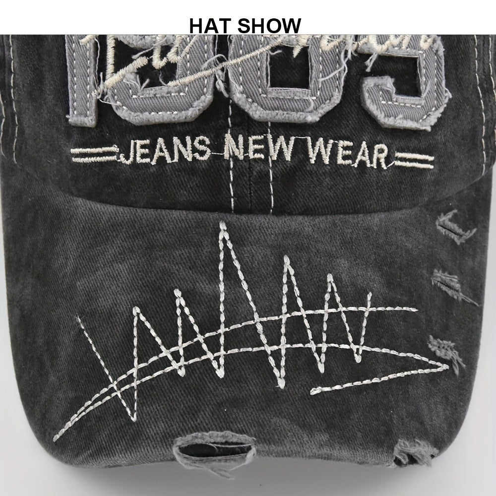 1985 Embroidery Ripped Baseball Cap Washed Distressed Patch Adjustable Dad Hat Vintage Lightweight Sunscreen Sports Hat
