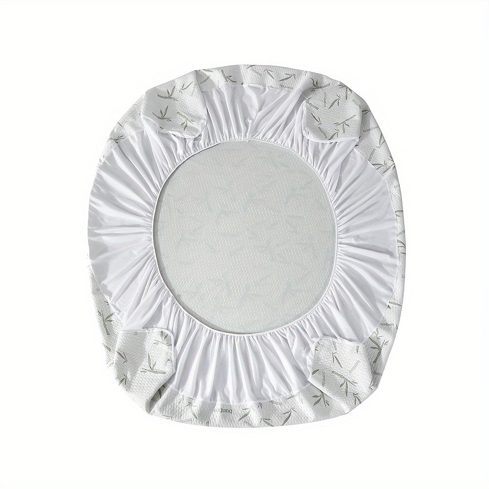 1pc 100% Bamboo Fiber Mattress Protector 250gsm - Cooling Breathable Bed Cover with 3D Air Layer, Green, Machine Washable Polyurethane Filling for Pressure Relief & Temperature Regulation, Bed Comfort Enhancement, Stylish Bed