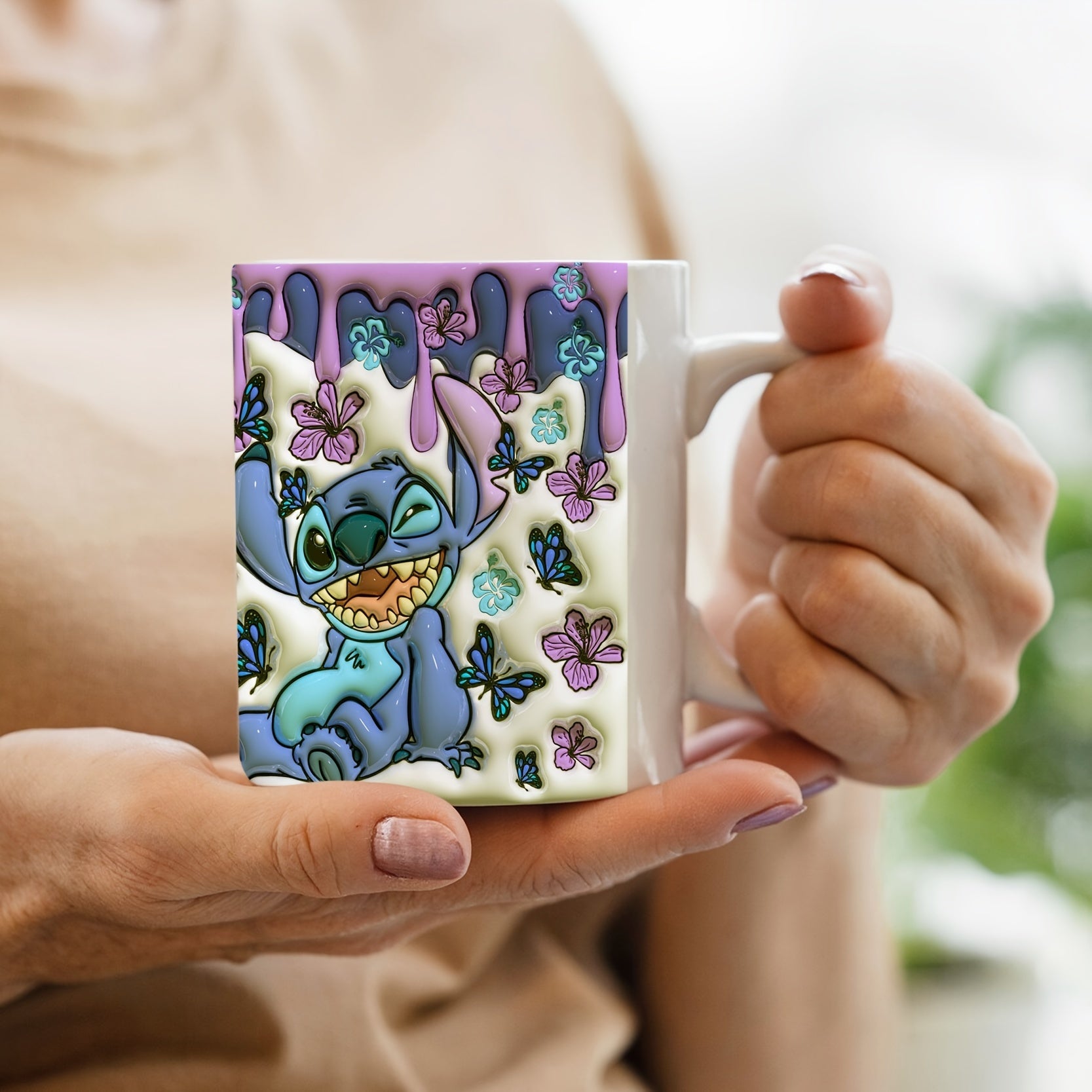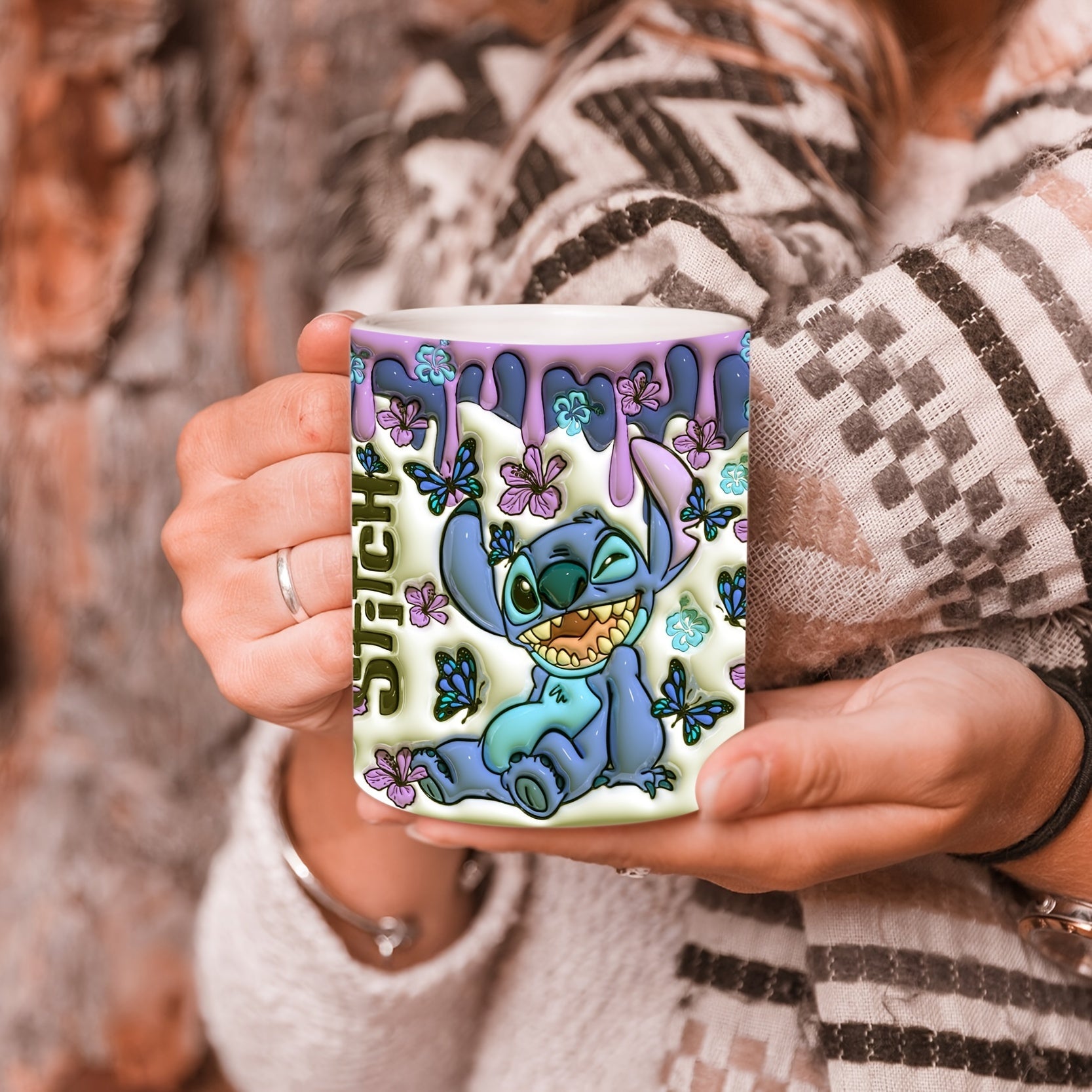 1pc, 11oz Printed Blue Sticky Notes Pattern Ceramic Mug, Portable Wide Mouth Coffee Cup, Water Cup, Suitable Gift For Family Friends, Summer Essential, Back To School Supplies, Apartment Essentials, College Dorm Essentials