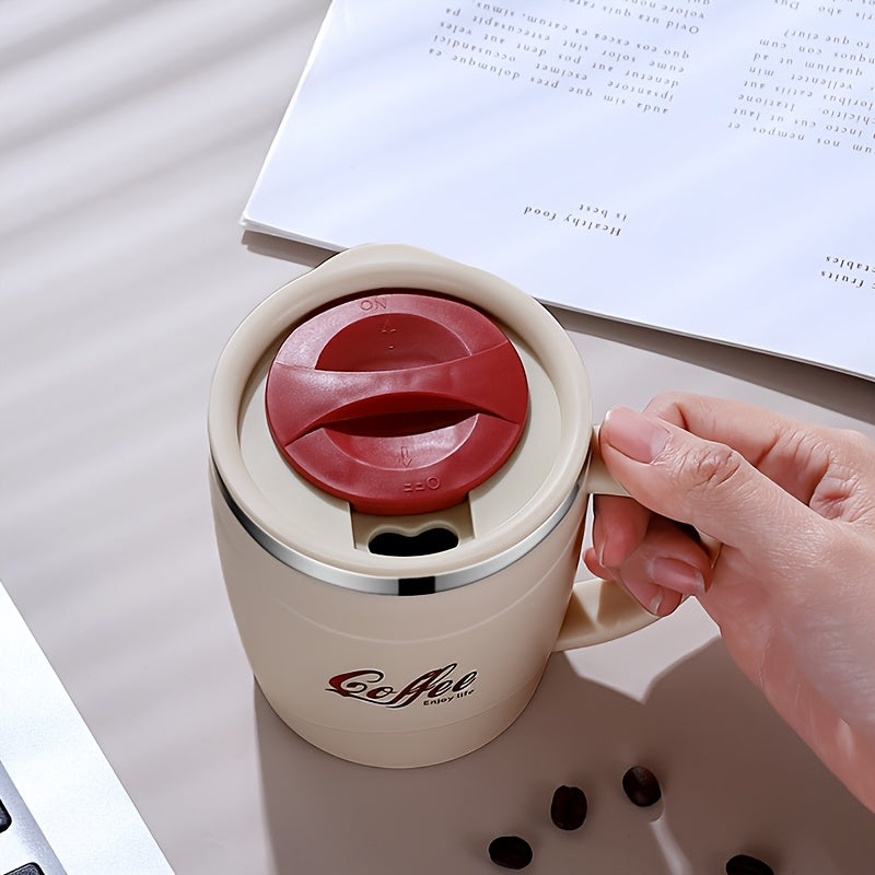 1pc 15.4oz Stainless Steel Coffee Mug with Lid & Measurement Marks - Durable 304 Stainless Steel Cup for Office, Outdoor, or Home Use - White, Black, Red Options, Office Coffee Mug | Sleek Mug Design | Secure Lid Design, Coff