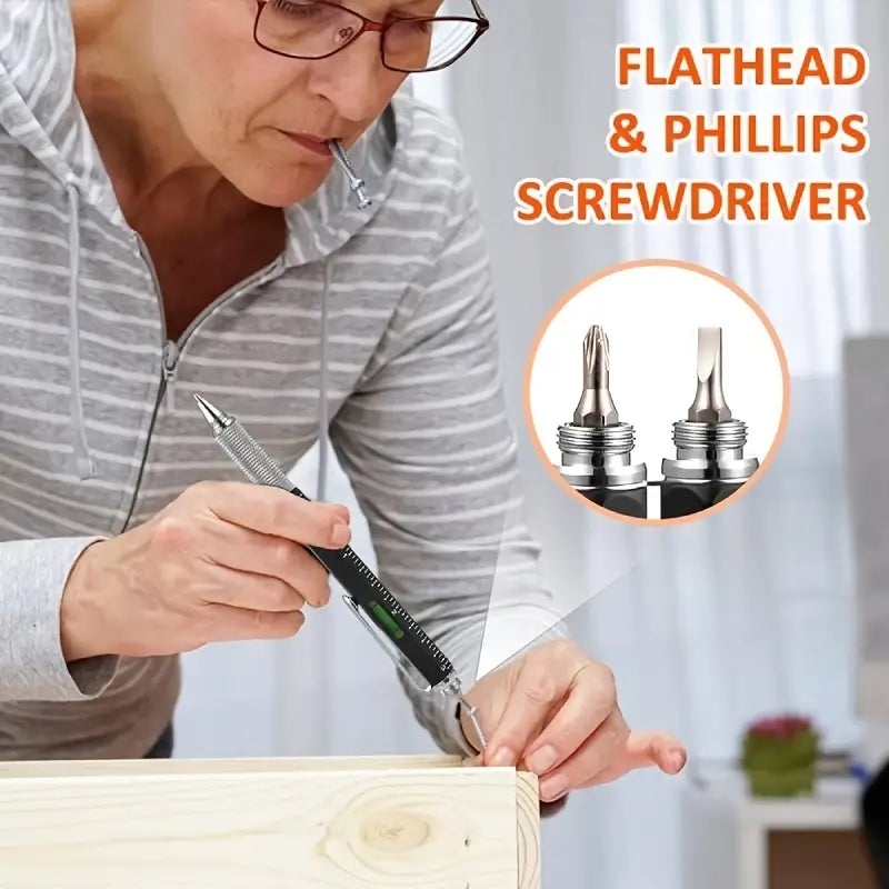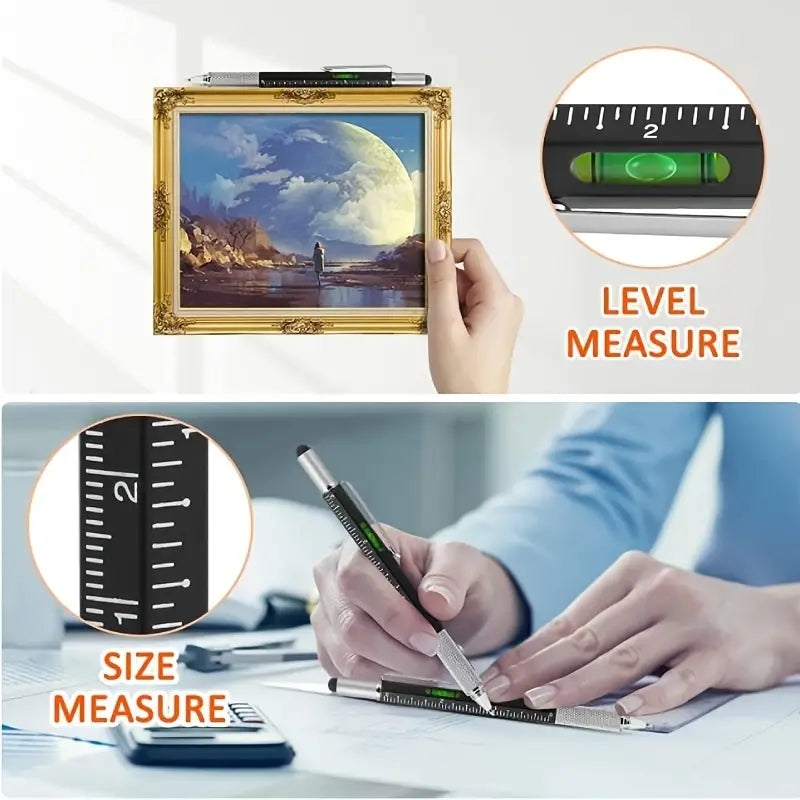 1pc, 6-in-1 Multifunctional Tool Pen Building Tools, Gift Tool Pen, Multifunctional Technology Pen with 1.0mm Black Round Ballpoint Pen, Ruler, Handwriting Pen, Level, Screwdriver, Pen Tool Gadget Pen Gift for Men Christmas G