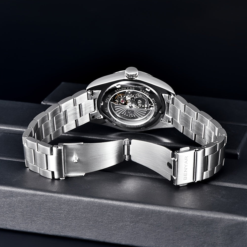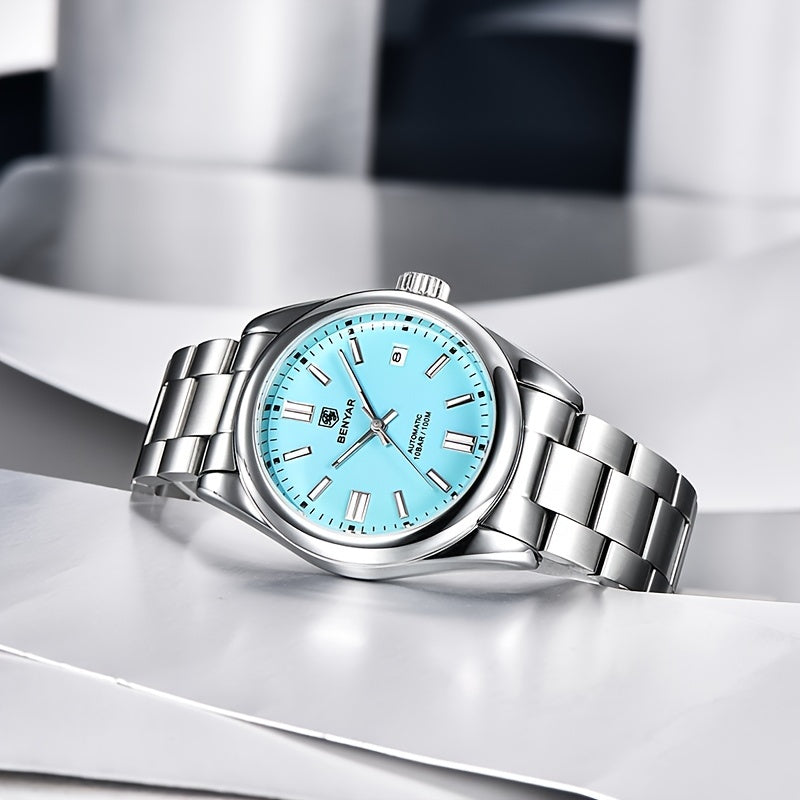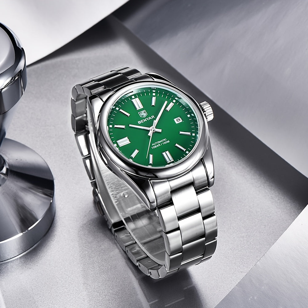 1pc BENYAR Men's Mechanical Wristwatch, 10Bar Waterproof Automatic Watch, Stainless Steel Sports Diving Watch For Men, Ideal choice for Gifts