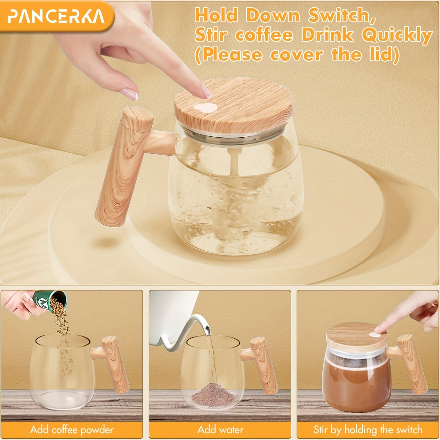 1pc, Electric Self-Stirring Coffee Mug, Glass Coffee Mug With Reusable Filter, Portable And Lightweight Coffee Mug With Leak-Proof Lid, Ideal For Home, Office, And Travel, One-Button Operation, Household Gadgets