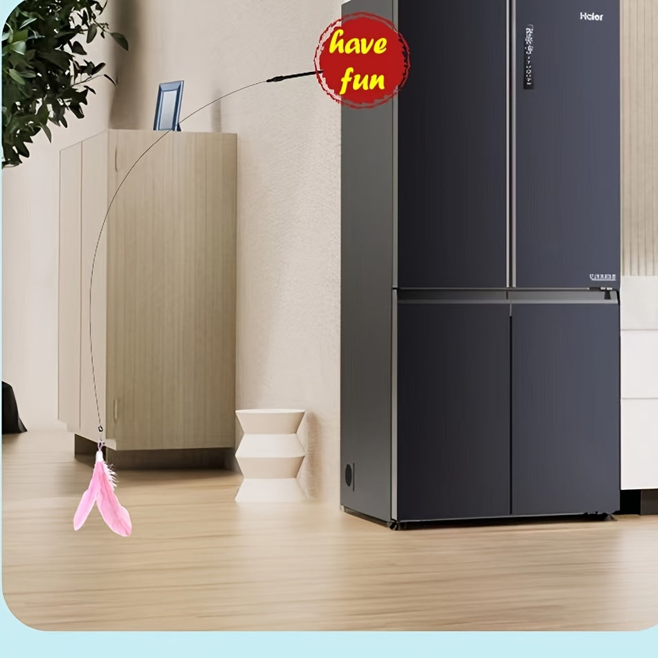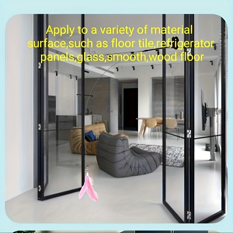 1pc Feather Decor Cat Teaser Stick Toy, Durable Cat Chew Toy With Bell And Suction Cup For Cat Interactive Supply