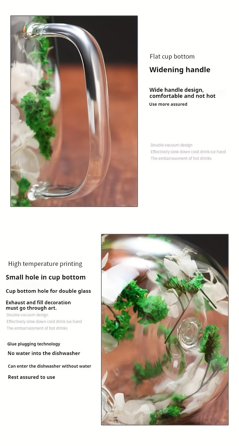 1pc, Flowers Inside Glass Coffee Mug, High Borosilicate Glass Double-Walled Espresso Coffee Cups, Heat Insulated Water Cups, Summer Winter Drinkware, Birthday Gifts