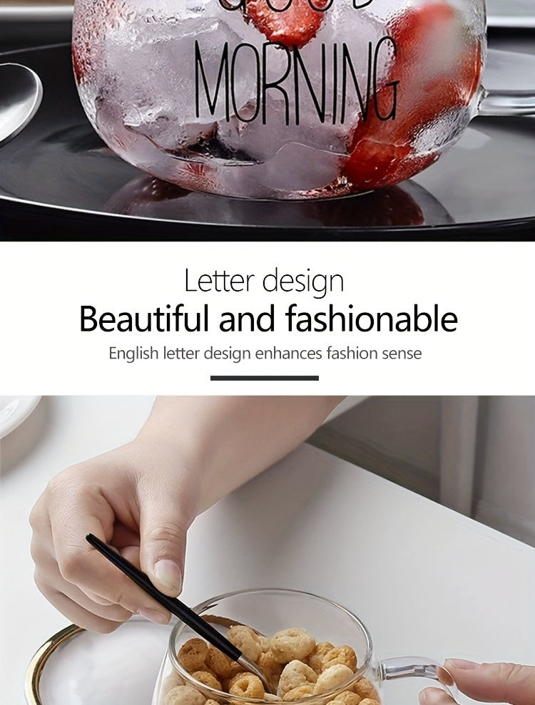 1pc, Good Morning Breakfast Milk Oatmeal Cup, High Borosilicate Glass Mug, Large Capacity Glass Cup, 400ml/13.6oz