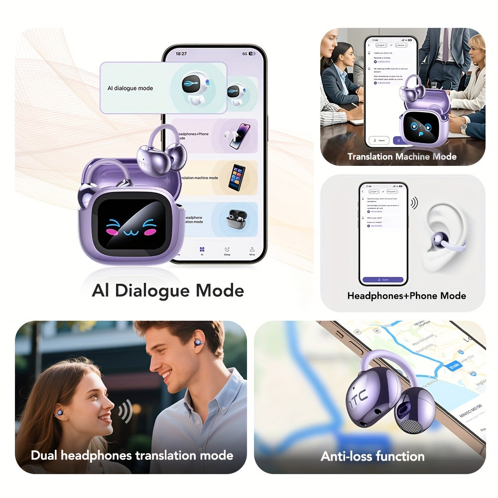 1pc HTC NE32 AI Translation Headset with 134+ Language Support, Wireless 6.0 Wireless, Touch Controls & Built-in Mic, Real-Time Translation Device for Travel, Business, Study, Sports - Compatible with Smartphones (USB-C Charg