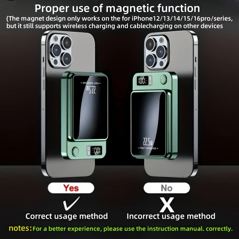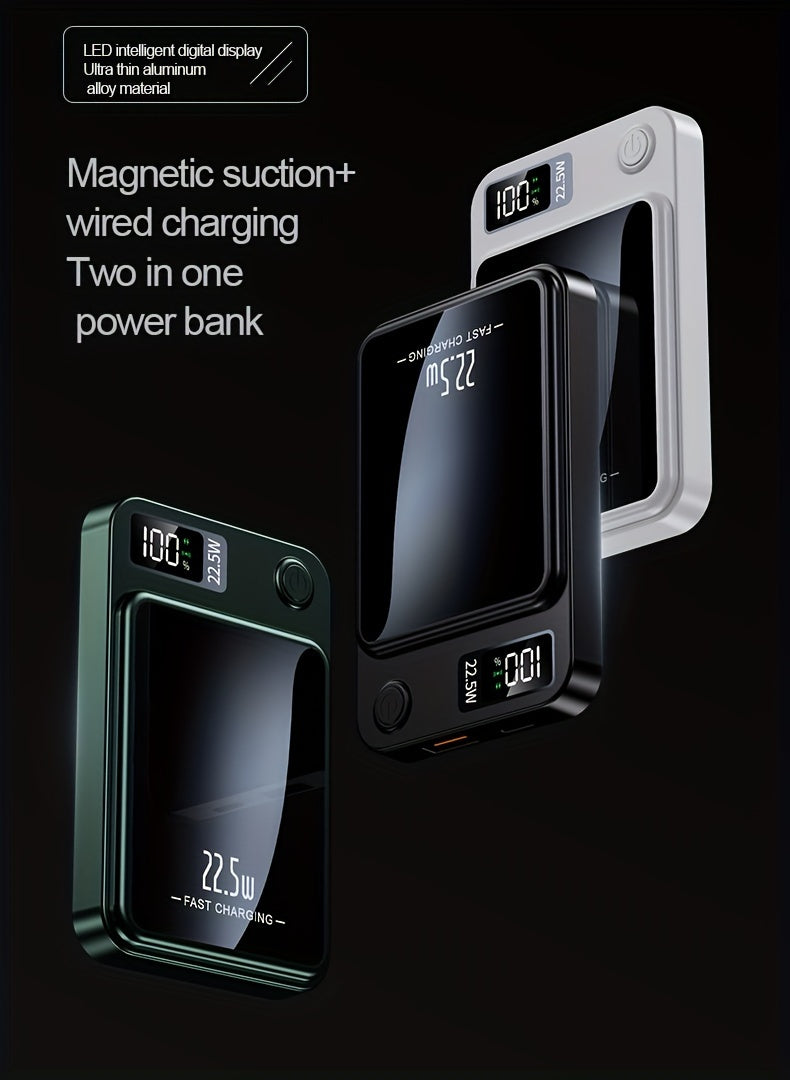 1pc KOILAGER 10000mAh Portable Power Bank with Ultrathin Magnetic Wireless Charging, 22.5W Super Fast Charge, PD20W Bi-directional Fast Charging, 15W Wireless Power, LED Display, Dual Power USB/Type-C for iPhone 16/15pro/14ma