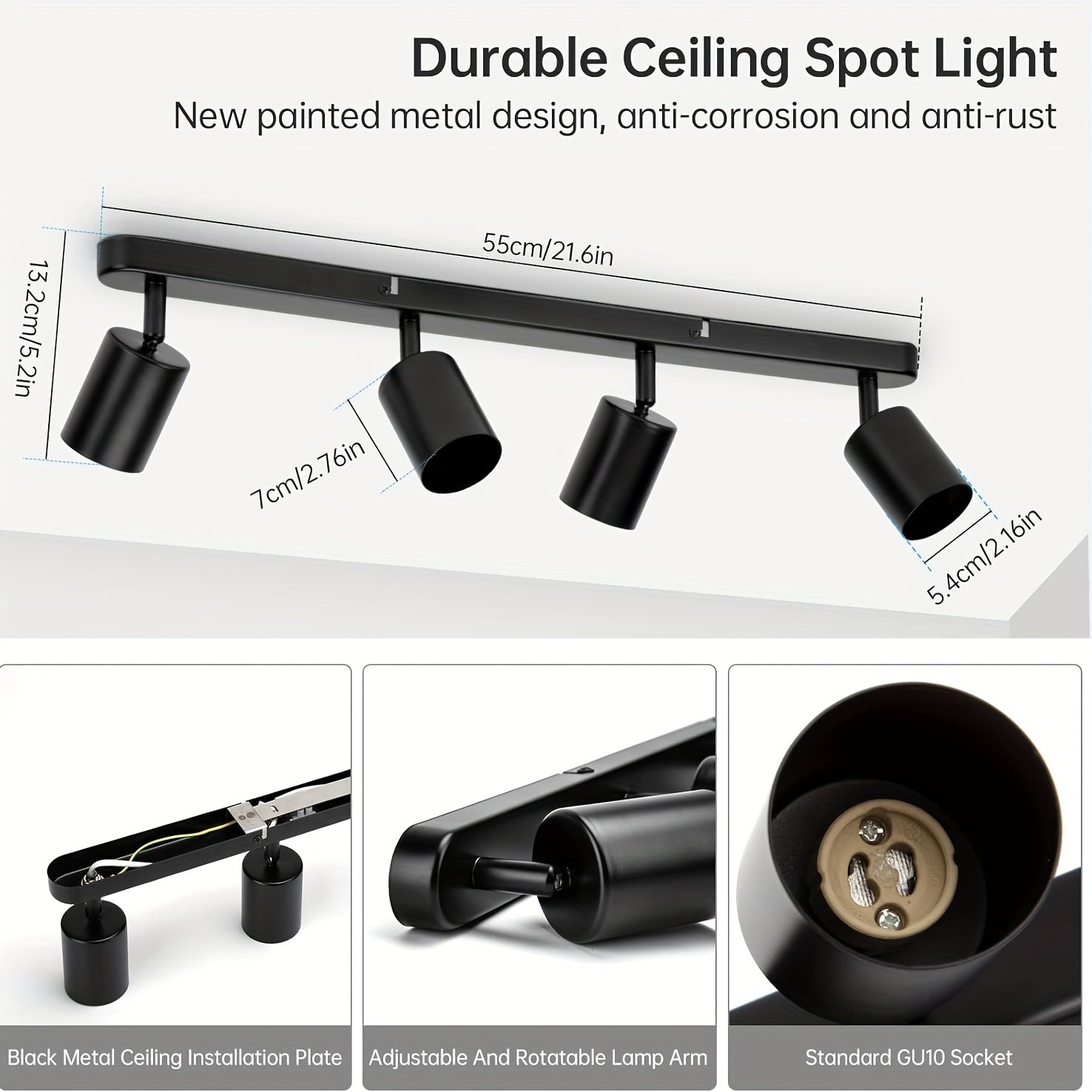 1pc LED Ceiling Light with 4 Bulbs, Rotatable GU10 Spotlight Bar Pendant Lamp in Black & White, Modern Kitchen Bedroom Living Room Ceiling Fixture (Bulbs Not Included)