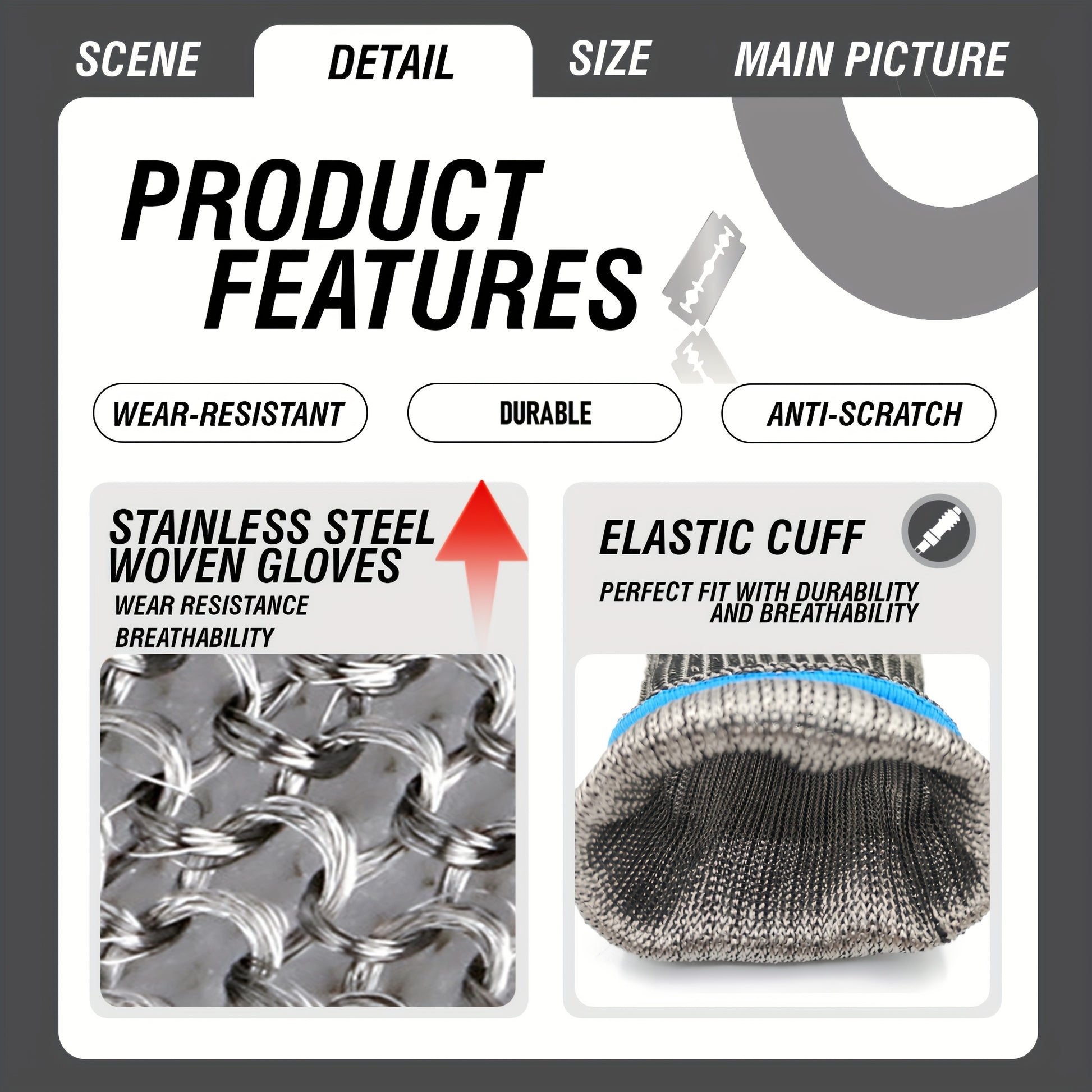 1pc Long Cuff Stainless Steel Wire Mesh Cut-Resistant Glove with White Nylon Liner - Cut Level 9 Protection, Machine Washable, Ideal for Butchering, Glass Handling, and Industrial Work