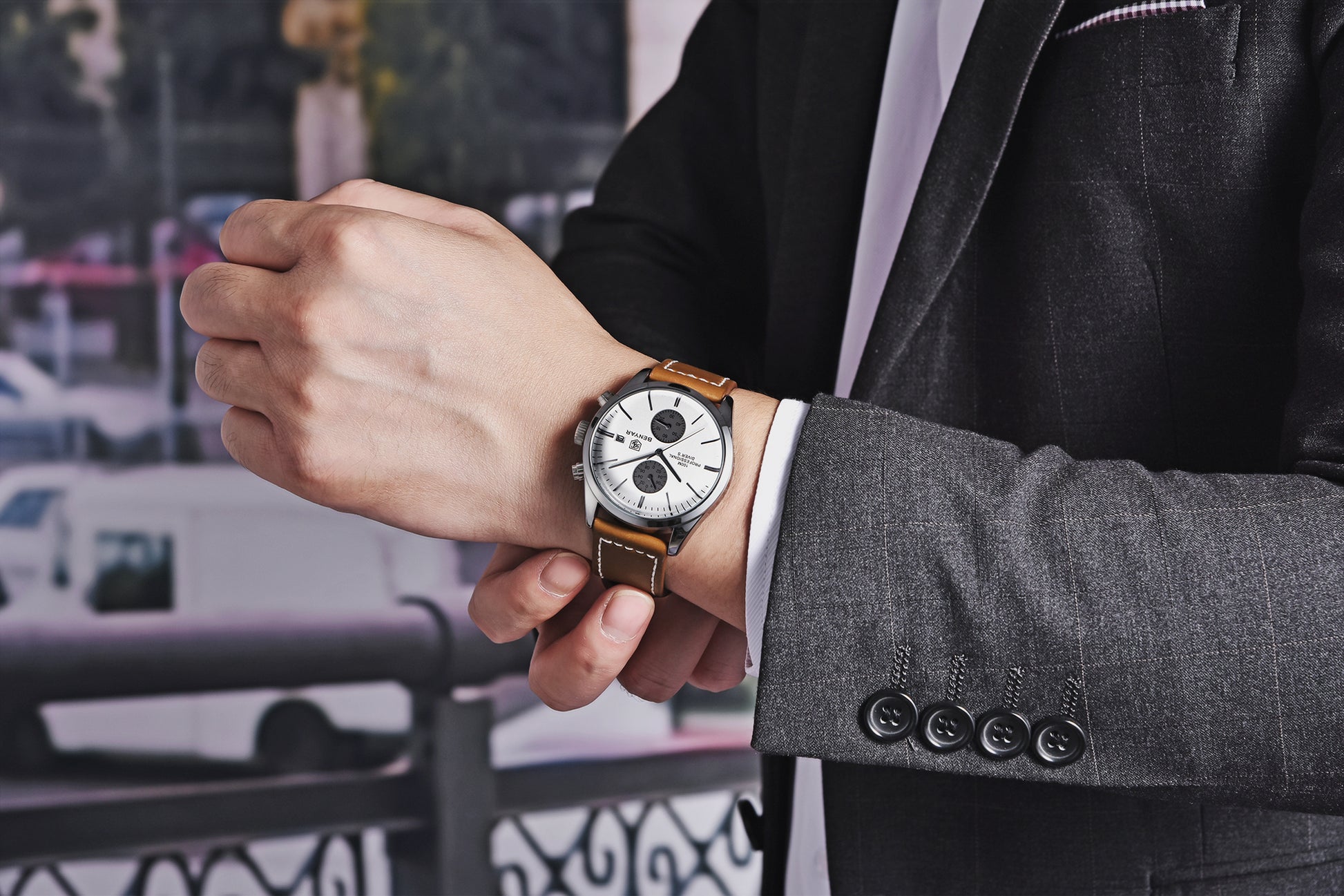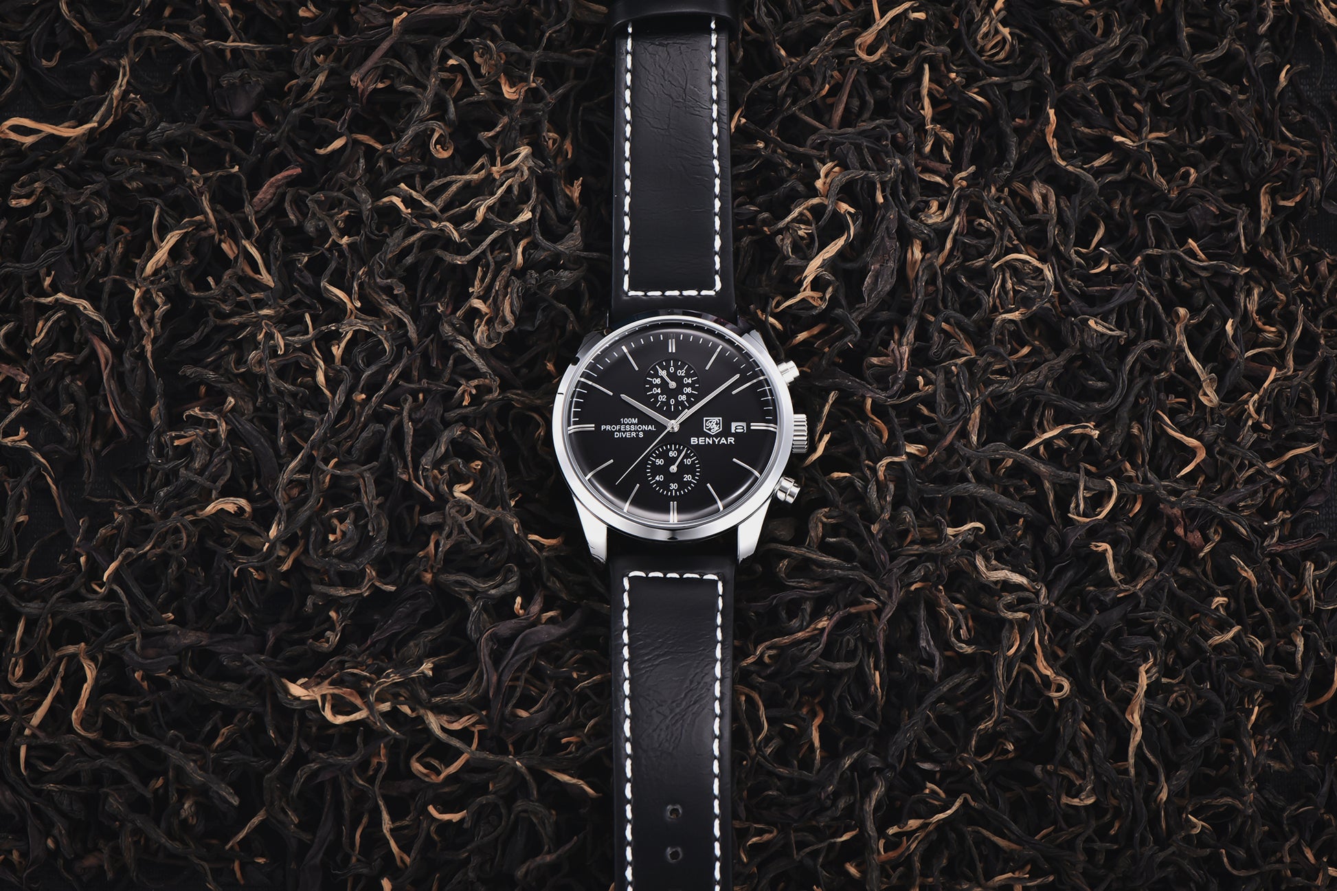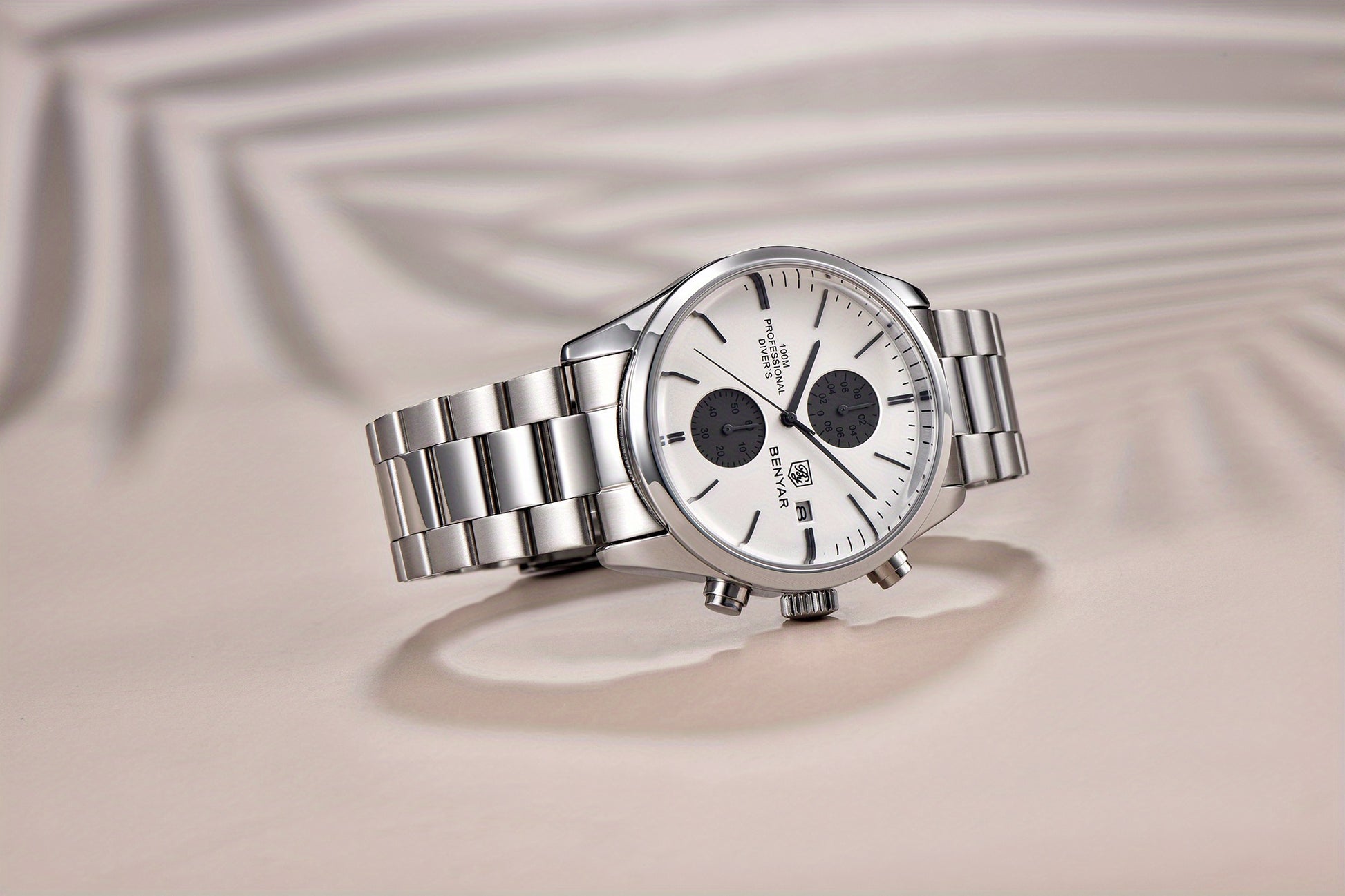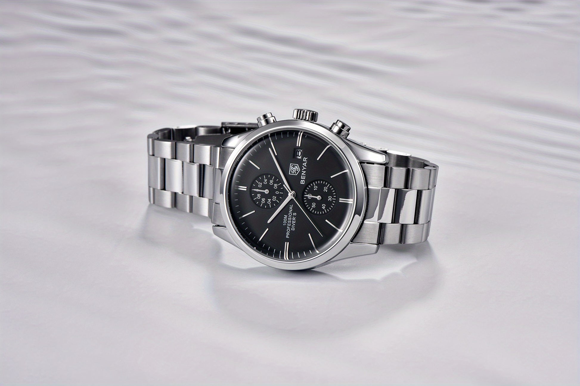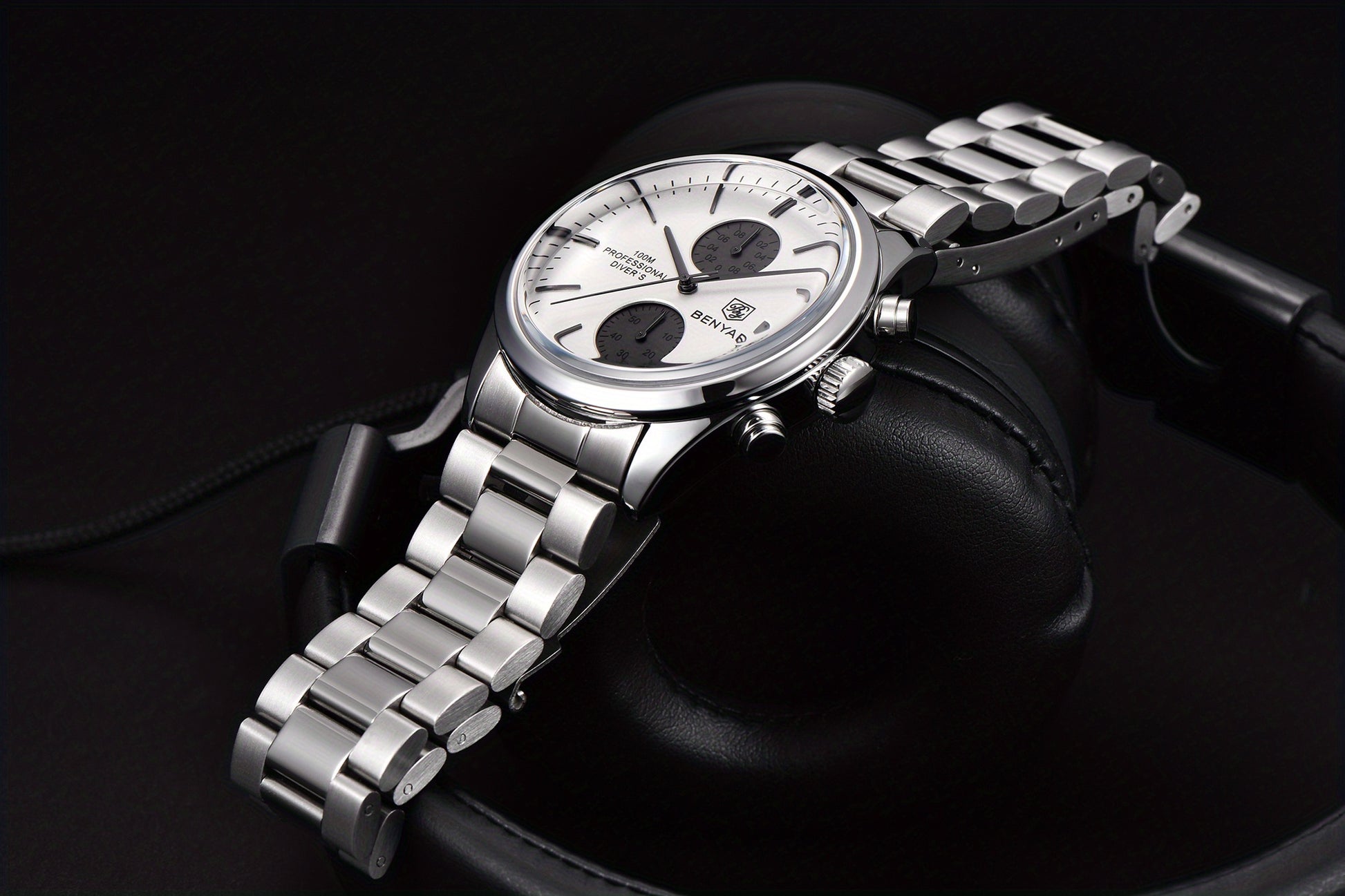 1pc New BENYAR Men's PU Leather Quartz Wristwatch, Men's 100M Multifunctional Watch Military Sports Chronograph Watch For Men