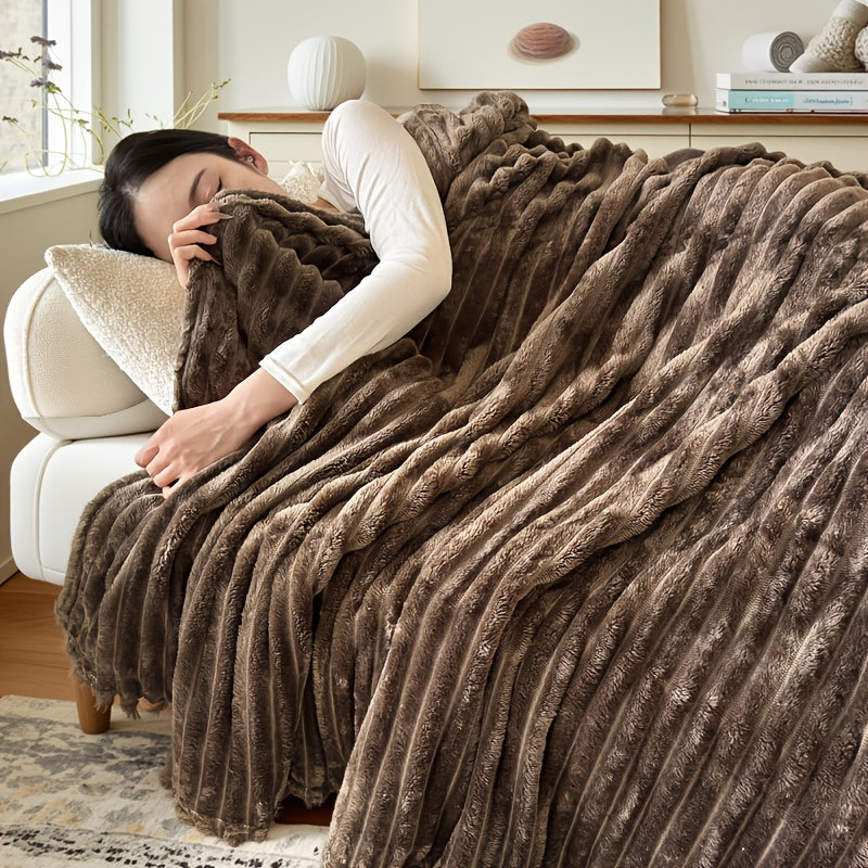 1pc Plush Coral Fleece Blanket - Ultra-Soft All-Season Luxury Bedspread, Couch Throw, Camping & Travel Bedding,,,, Grey, - Machine Washable Cozy Gift for, Outdoor, or Holidays - Traditional Style with Geometric Pattern, Multi