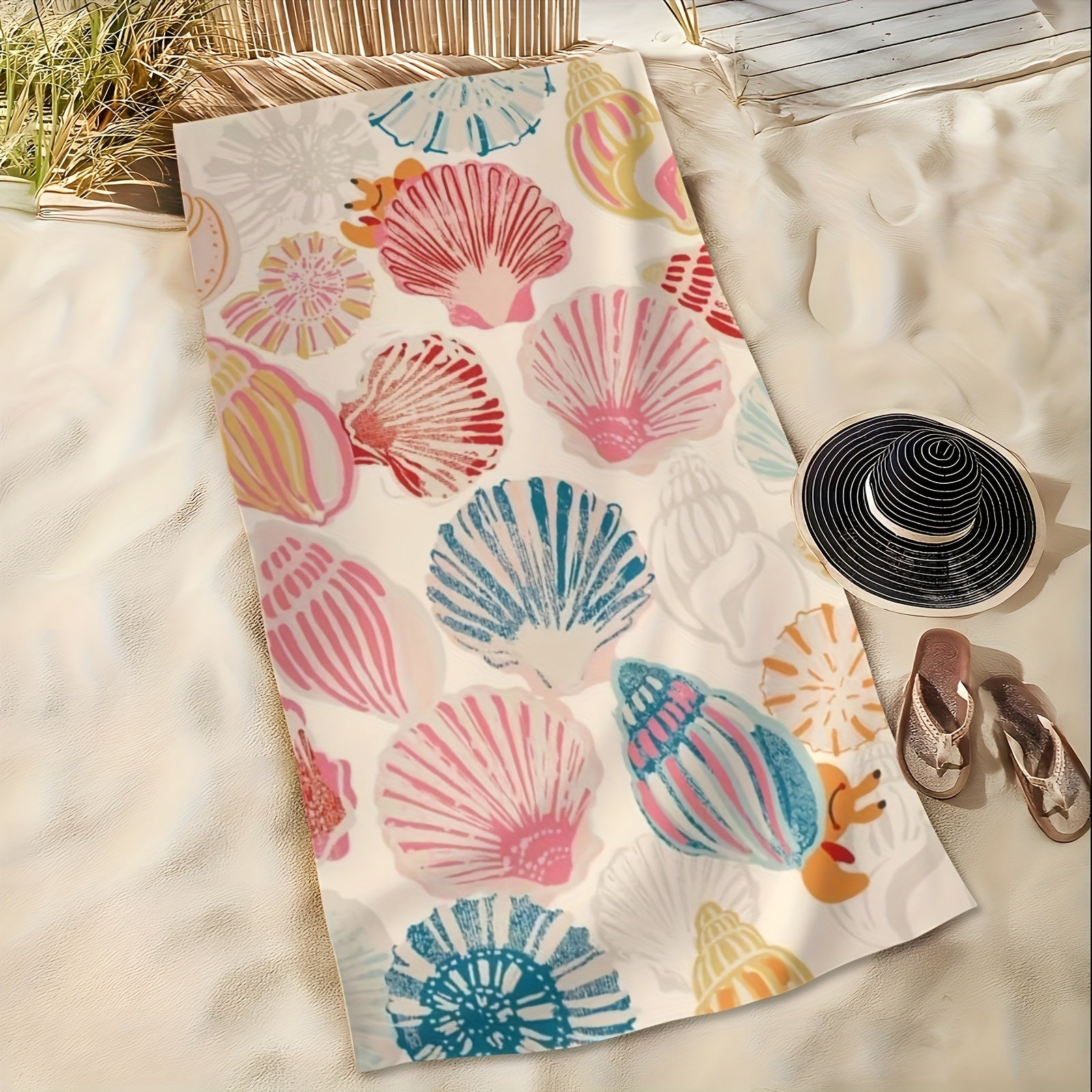 1pc Quick-Dry Super Absorbent Beach Towel – Soft, Lightweight, Vibrant Seashell Pattern, Perfect for Travel, Swimming, Camping, Yoga, Gym, and Beach Vacations, Beach Blanket