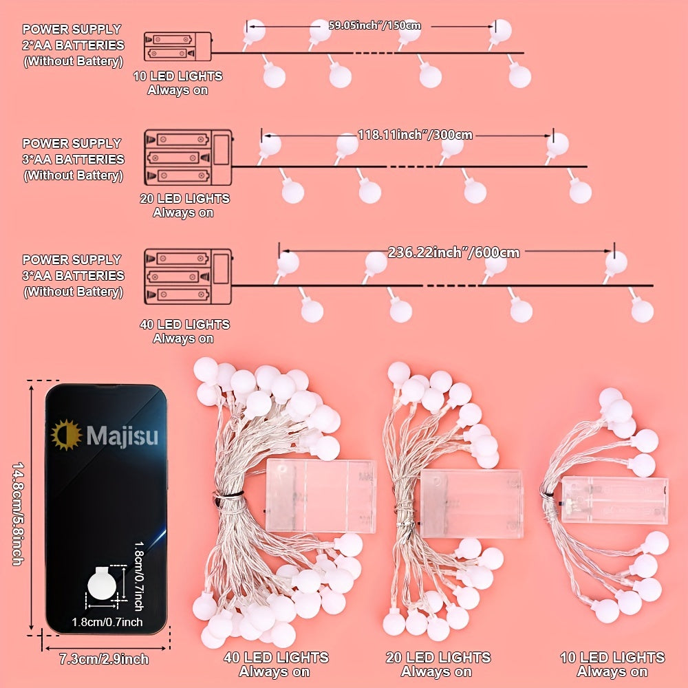 1pc, Sphere String Lights, Battery Operated Indoor Fairy Lights, Outdoor Indoor String Lights For Backyard, Patio, Garden, Party, Bedroom, Living Room, Classroom, Camping Decoration Warm White Globe Fairy Lights