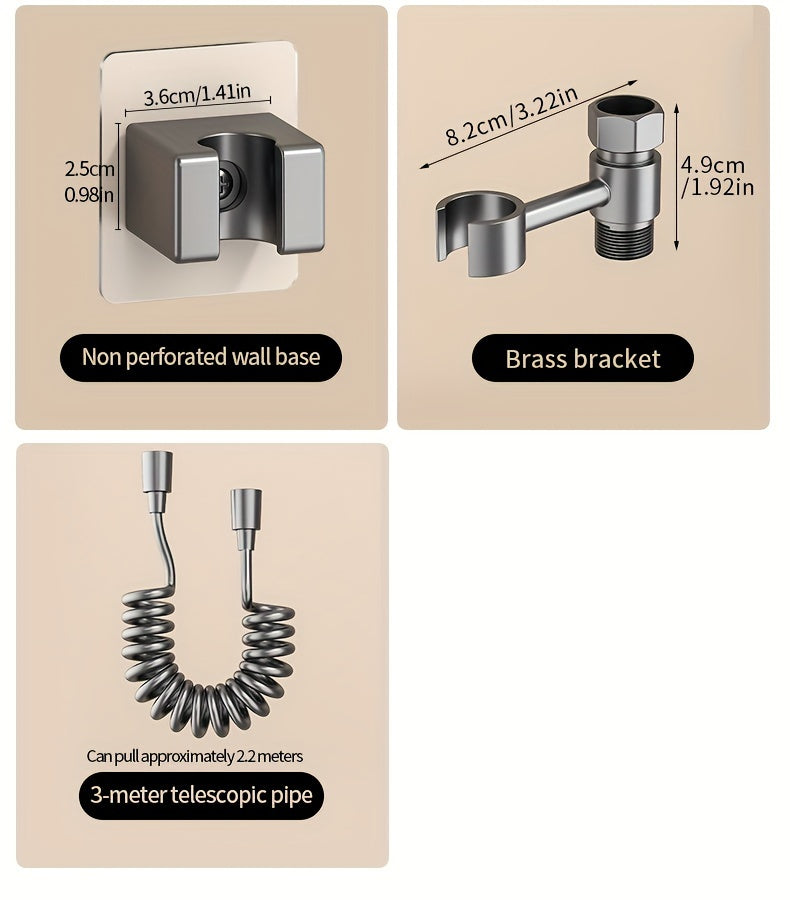 1pc Stainless Steel Handheld Bidet Sprayer - Powerful, Non-Electric Bathroom Cleaning Nozzle with Extendable Hose for Toilet Flushing & Personal Hygiene