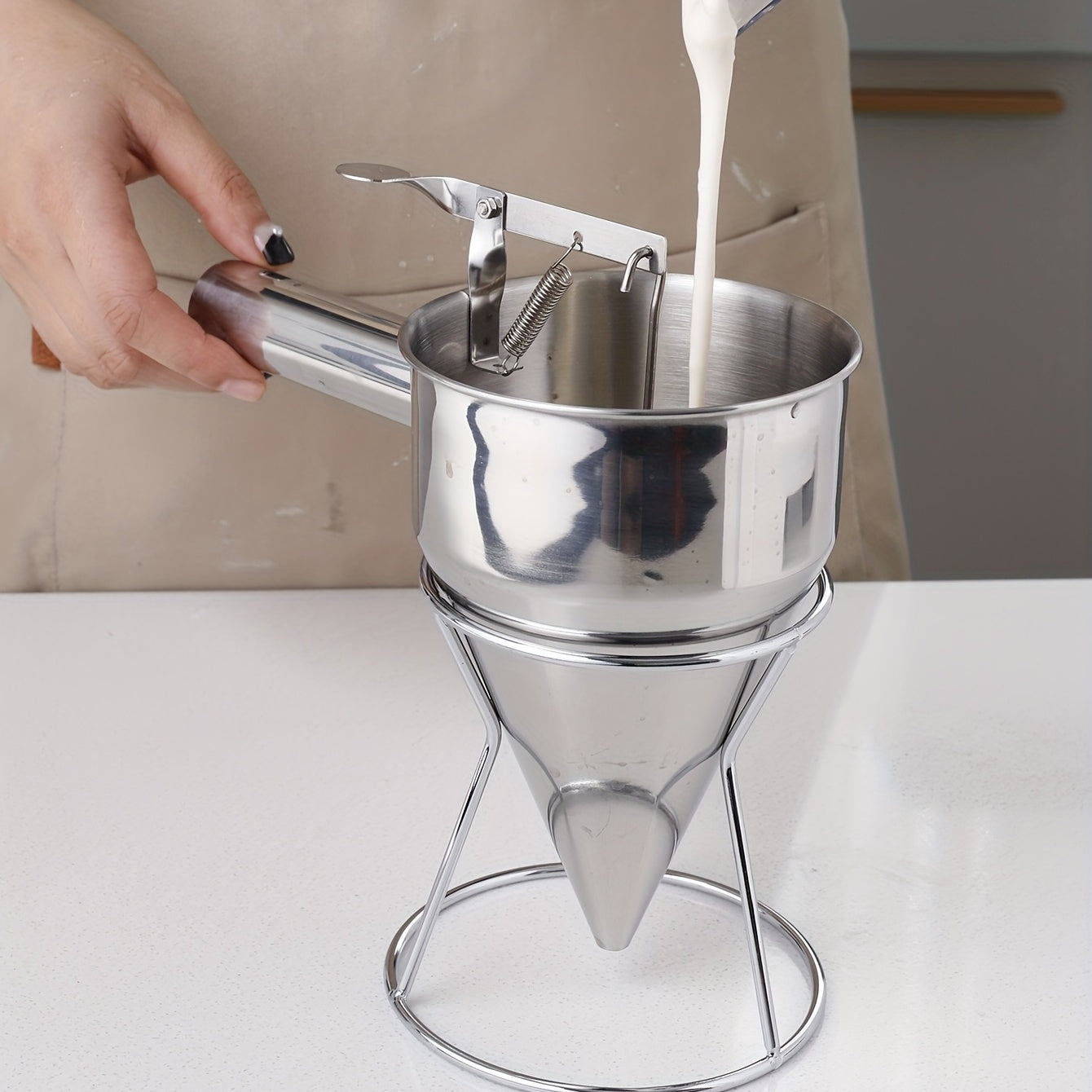 1pc, Stainless Steel Piston Funnel, Octopus Balls Tools With Rack, Batter Dispenser Cake Decorating Tool, Funnel Dispenser With Stand For Takoyaki And Baking, Kitchen Utensils, Apartment Essentials, College Dorm Essentials, B