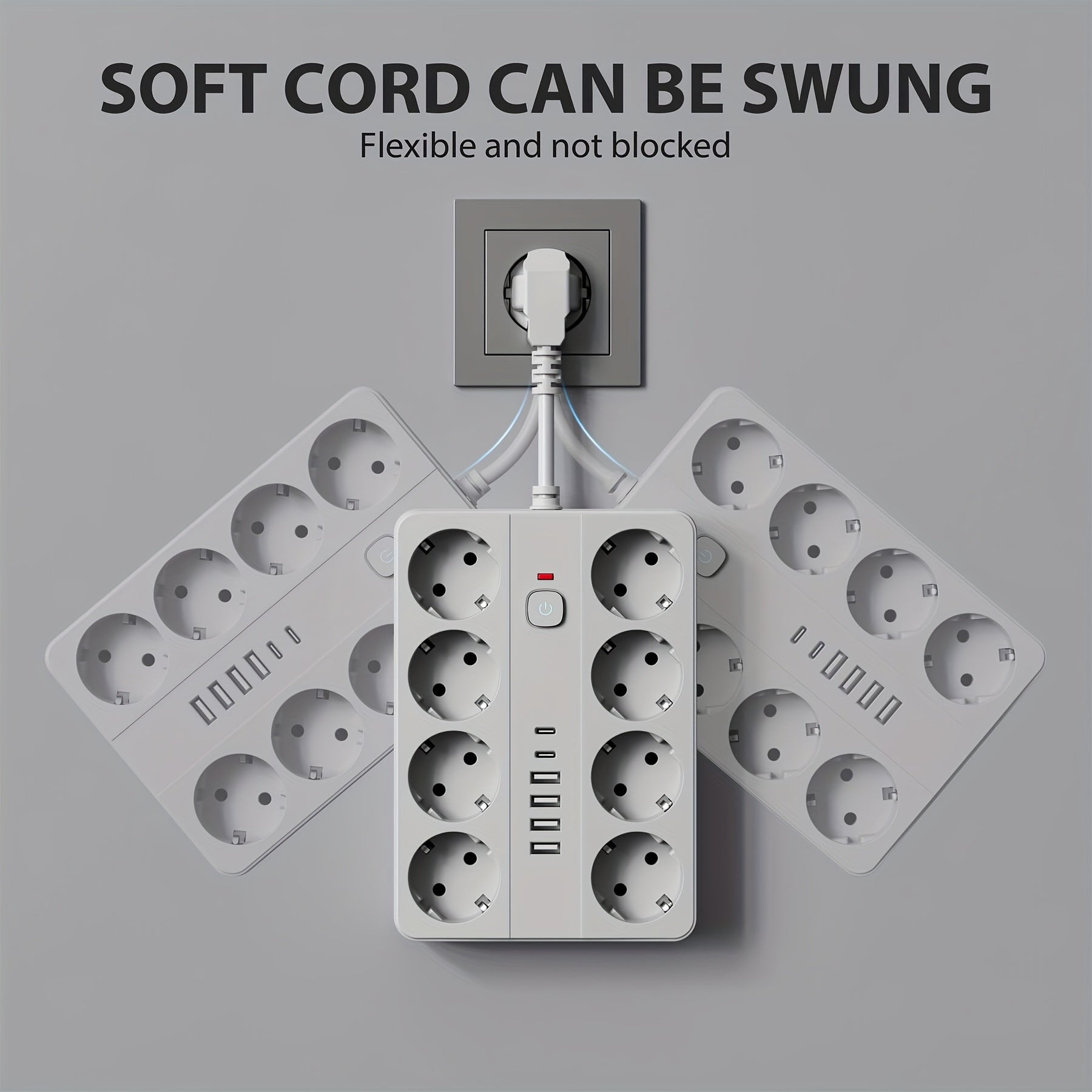 1pc Surge Protector Power Strip - 8 AC Outlets, 4 USB-A & 2 USB-C Ports, Overload Protection, Compact Design for Home, Office, Travel, Dorm Room Use, Office Power Supply, Modern Outlet Design, Surge Protection Device