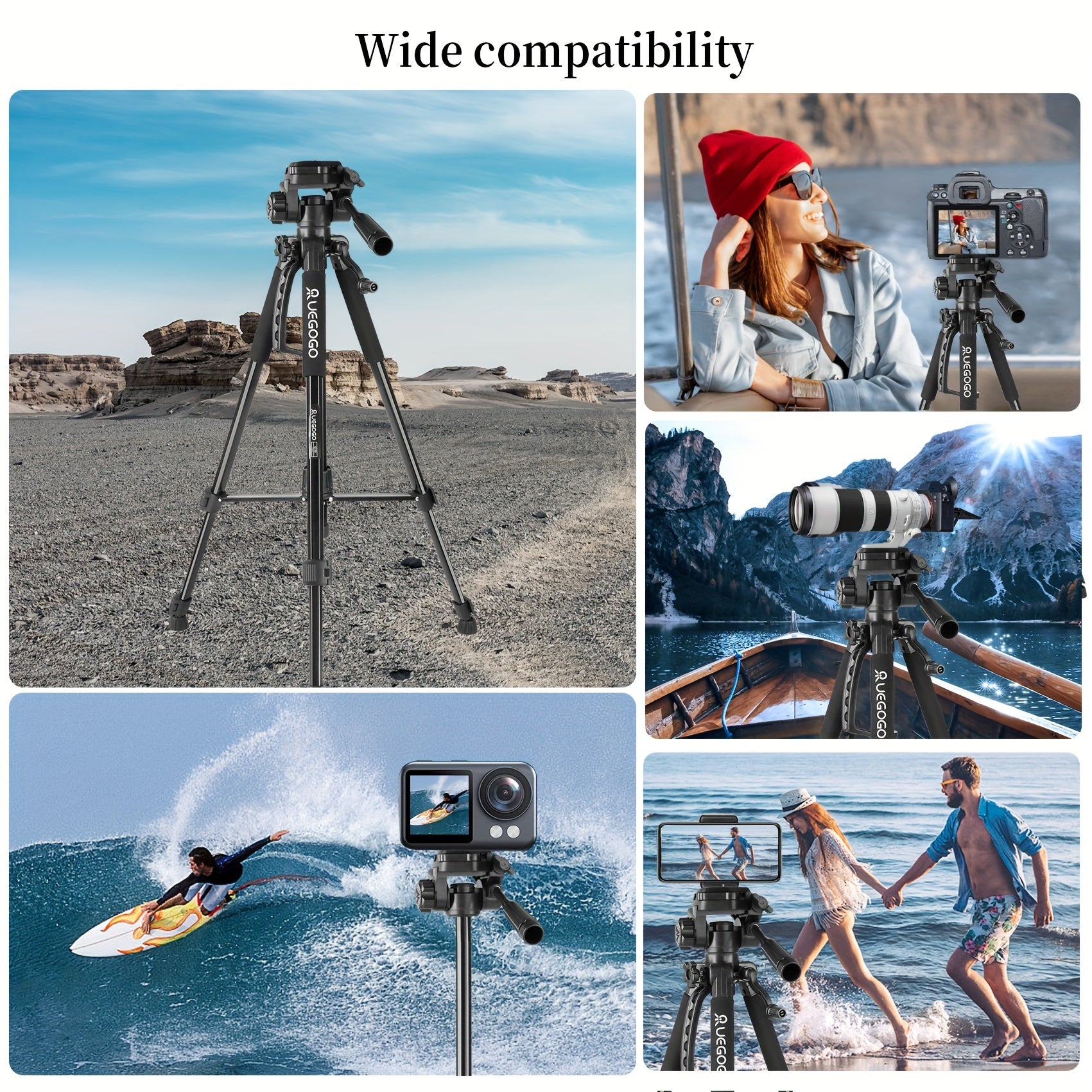 1pc UEGOGO 60-Inch Professional Aluminum Alloy Tripod Stand with Gimbal Head, Lightweight for Mirrorless Camera/DSLR/Camcorder/Cell Phone, Includes Storage Bag & Phone Clip