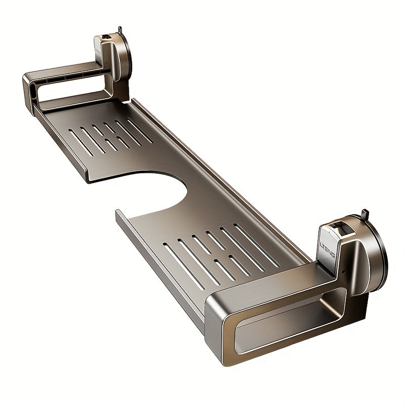 1pc Wall-Mounted Bathroom Sink Organizer with Suction Cup Faucet Holder - No-Drill Carbon Steel & ABS Shelf for Toothbrushes, Makeup Brushes, Floss - Space-Saving Vanity Storage for Small Bathrooms, Bathroom Sink Accessories,
