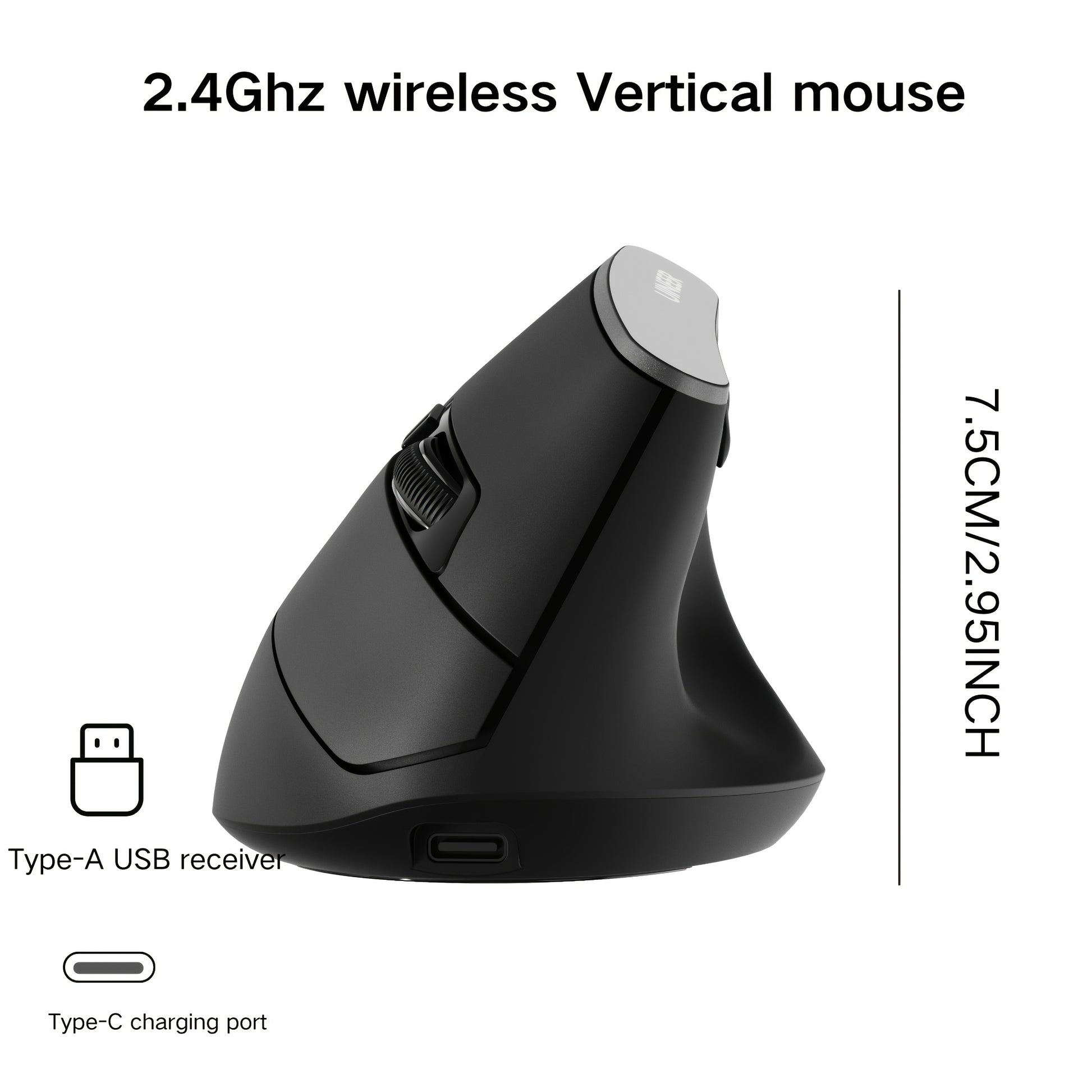 2.4Ghz Vertical Wireless Mouse with Visible Battery Display, 6 Keys, Ergonomic, Plug and Play for Office and Study