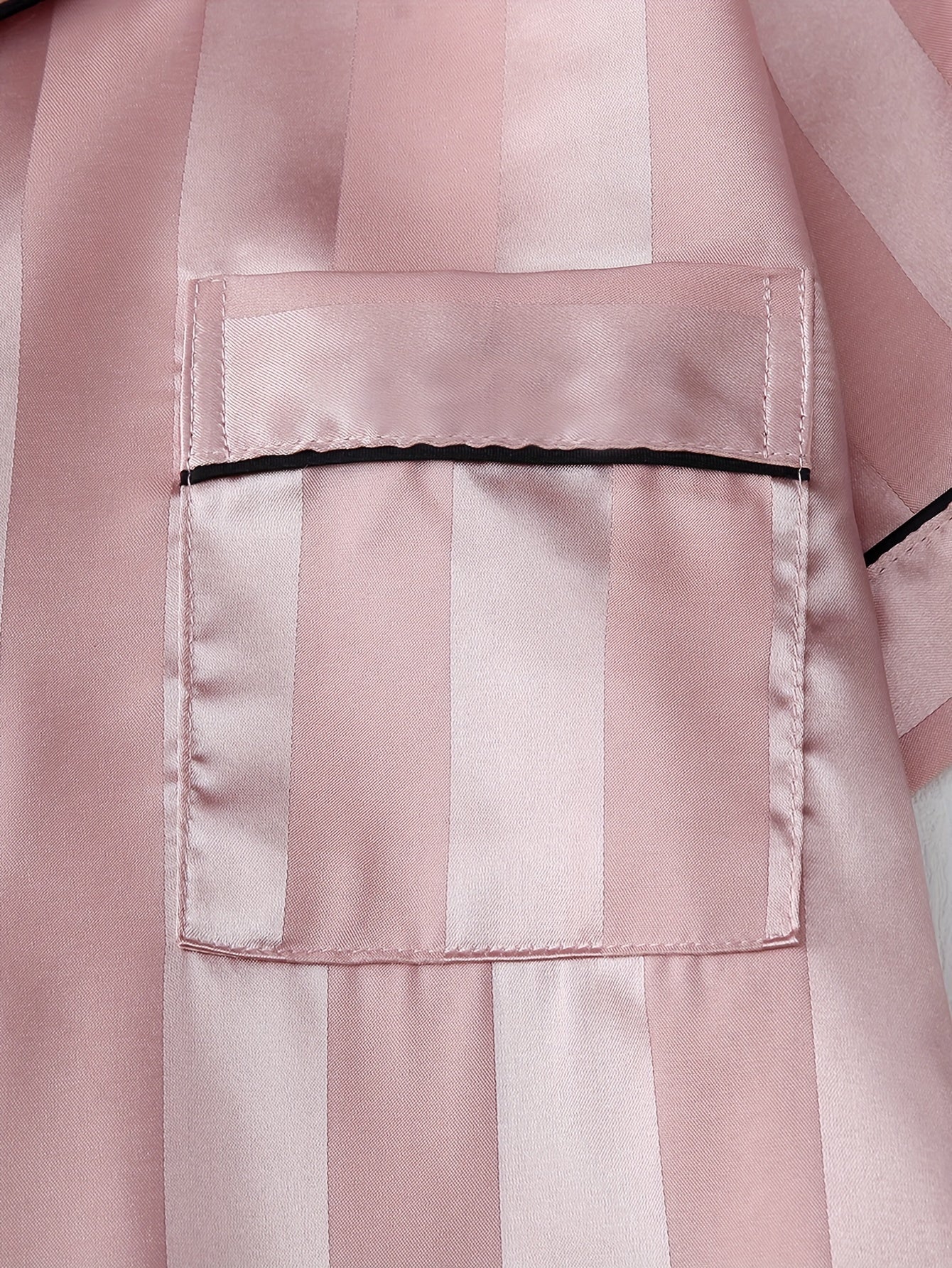2 Sets Women's Striped Satin Casual Pajama Set, Short Sleeve Buttons Lapel Top & Shorts, Comfortable Relaxed Fit