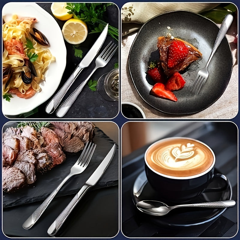 20/40pcs silverware cutlery set, hammer textured handle, durable cutlery including spoons, forks, knives, mirror polished high-quality stainless steel, dishwasher safe, suitable for home kitchens, restaurants, hotels, parties