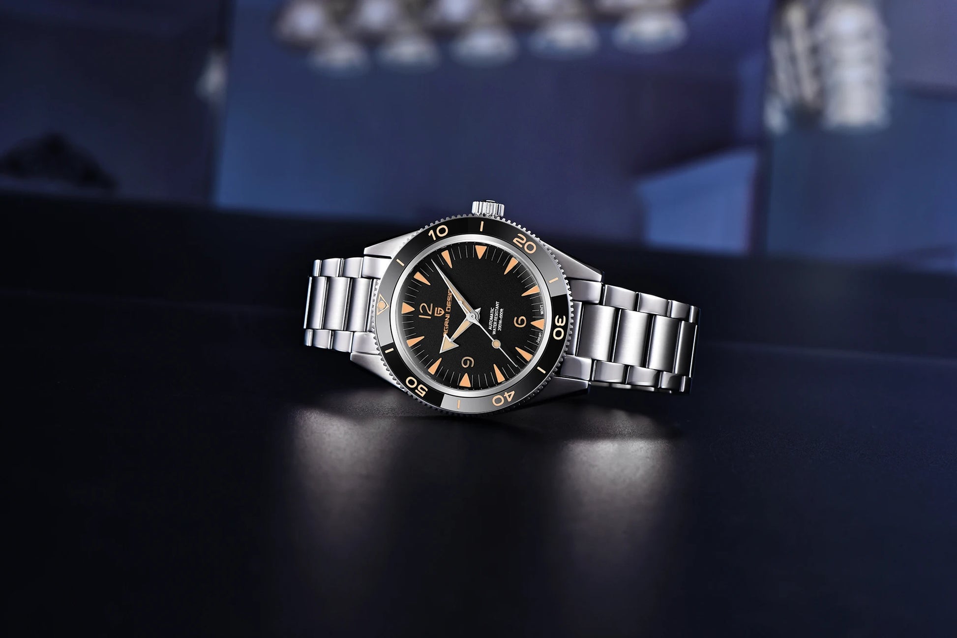 What are its notable features?: Some of its unique features include sapphire crystal windows, stainless steel strap, safety folding clasp, and swimming and diving capabilities.