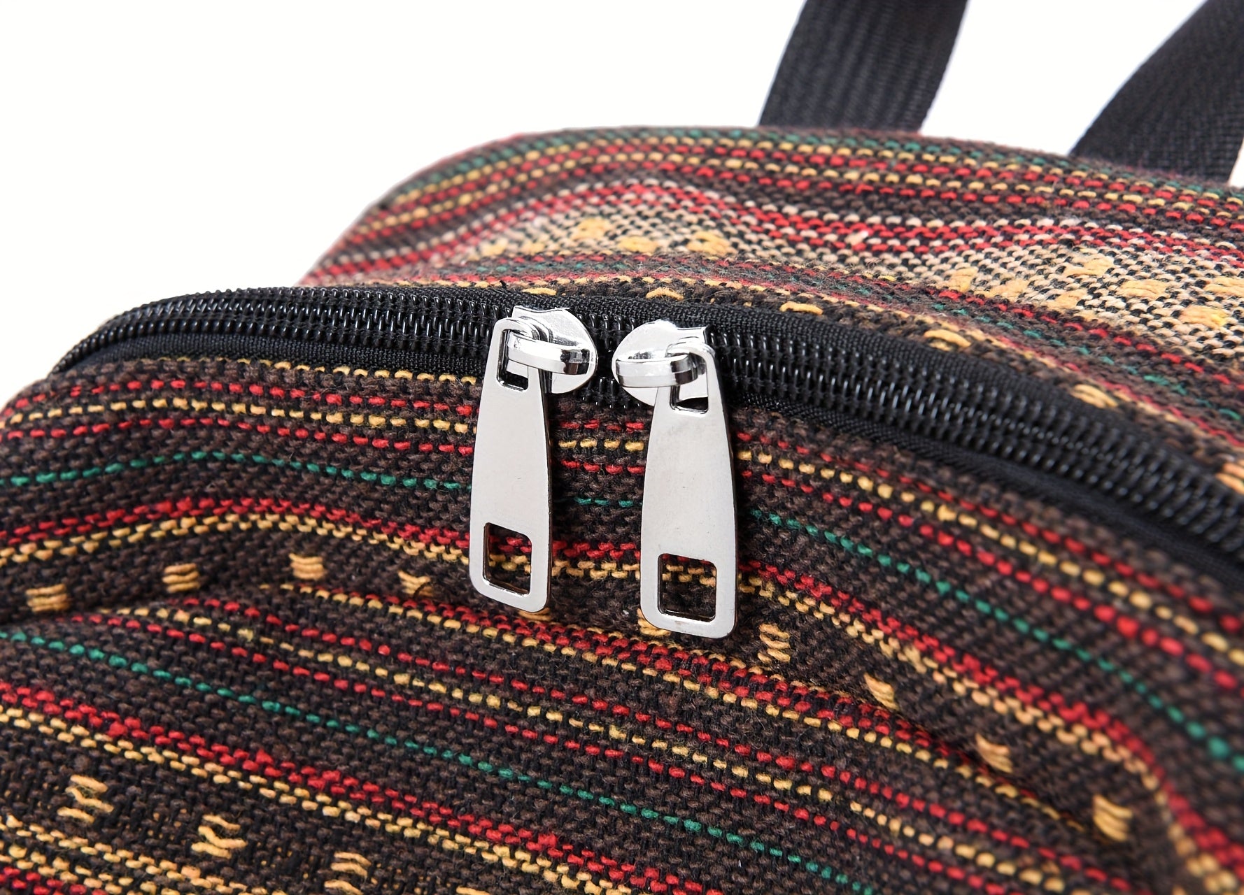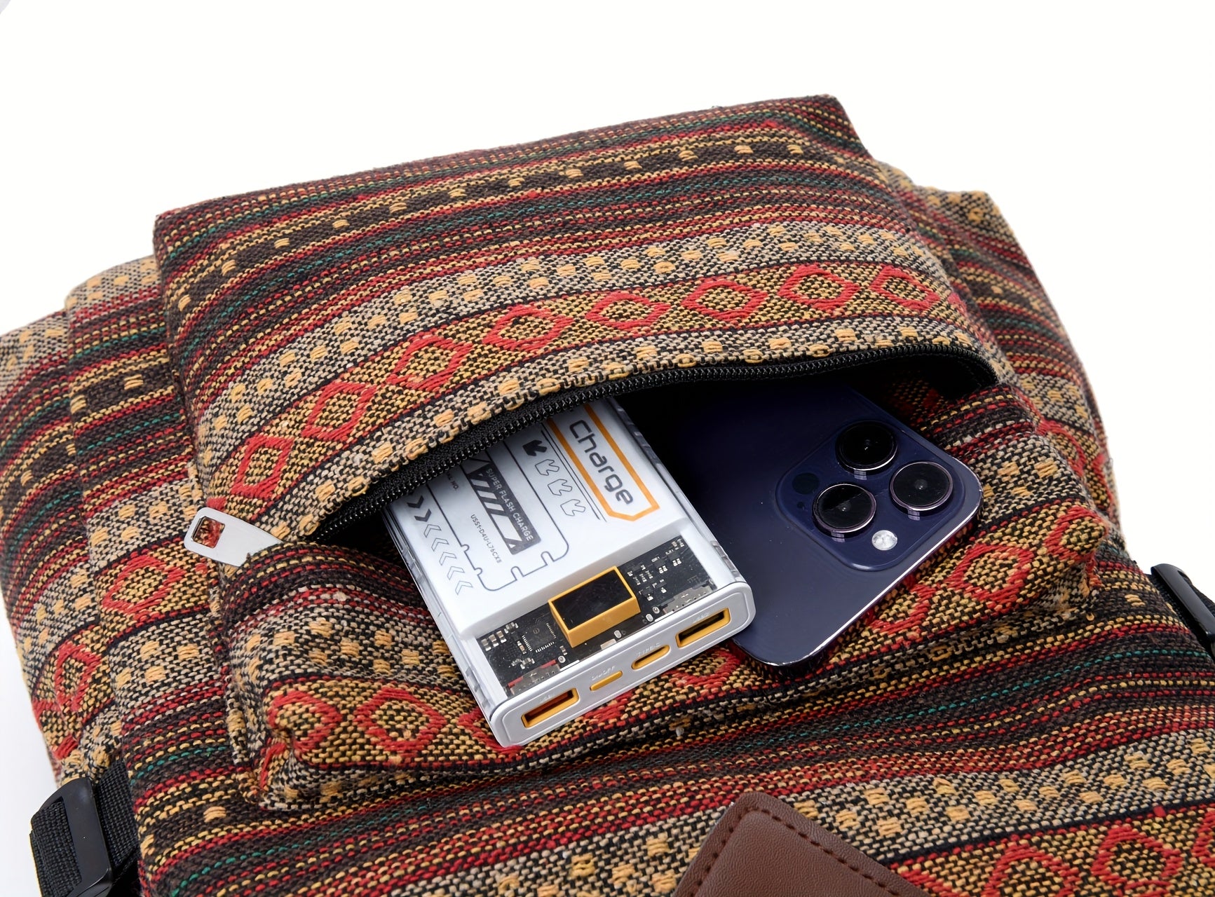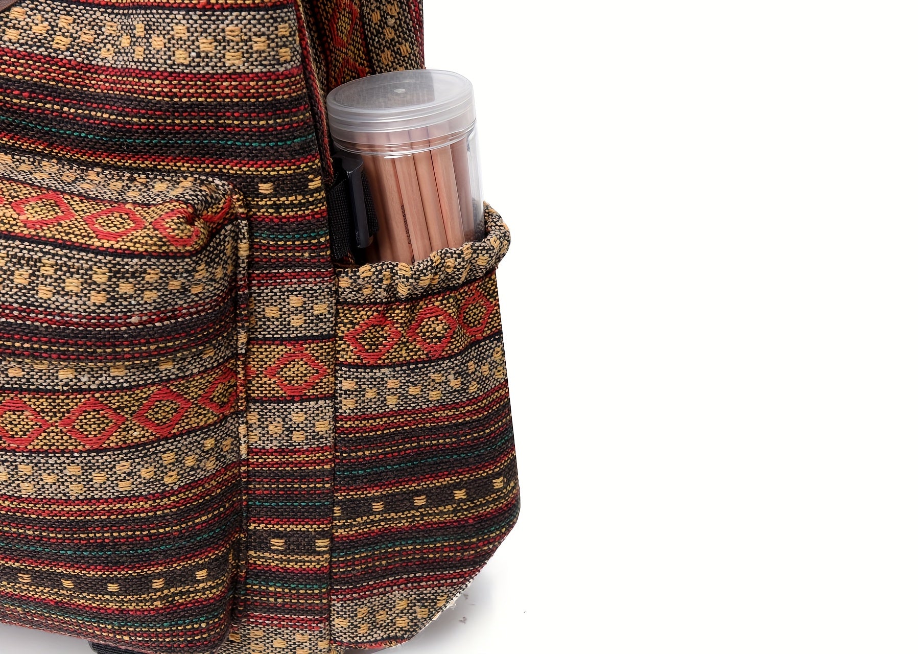 2025 vintage style backpack with adjustable straps, multiple compartments in brown, red, blue, and gray, large capacity travel and vacation backpack, travel backpack