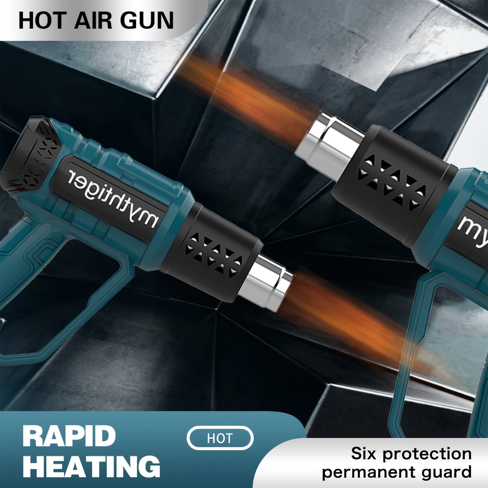 220V EU plug Newly Upgraded Heat Gun 60-650° Adjustable Blue Light LCD Display with 4 Nozzles, Adjustable Temperature and Blowing Volume, High Power Ideal for Shrink Wrap, Soften Paint, Bend Plastic Tubes, Loose Bolts, etc
