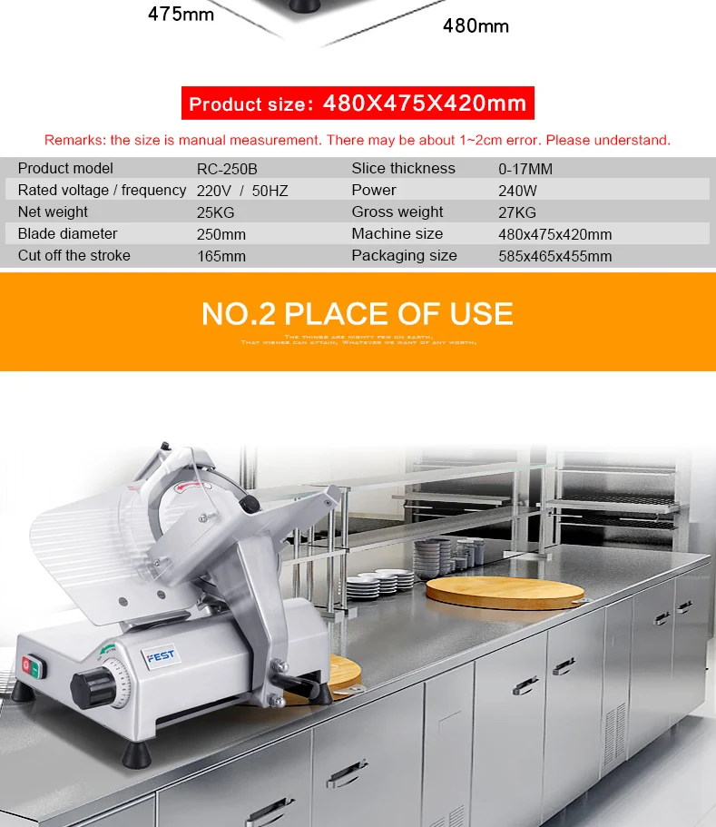 FEST chef's choice 250mm blade meat slicing mini slicer machine 110V/220V adjustable ham roll slicer cutter for home shredder