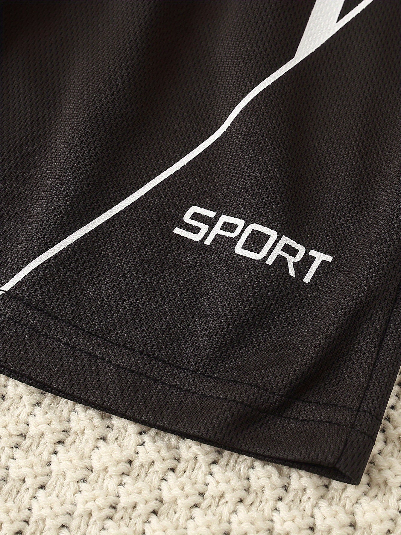 2pcs Boy's "Sport" Outfit Short Sleeves Round Neck T-shirt & Shorts Casual For Summer Daily And Outdoor Wear