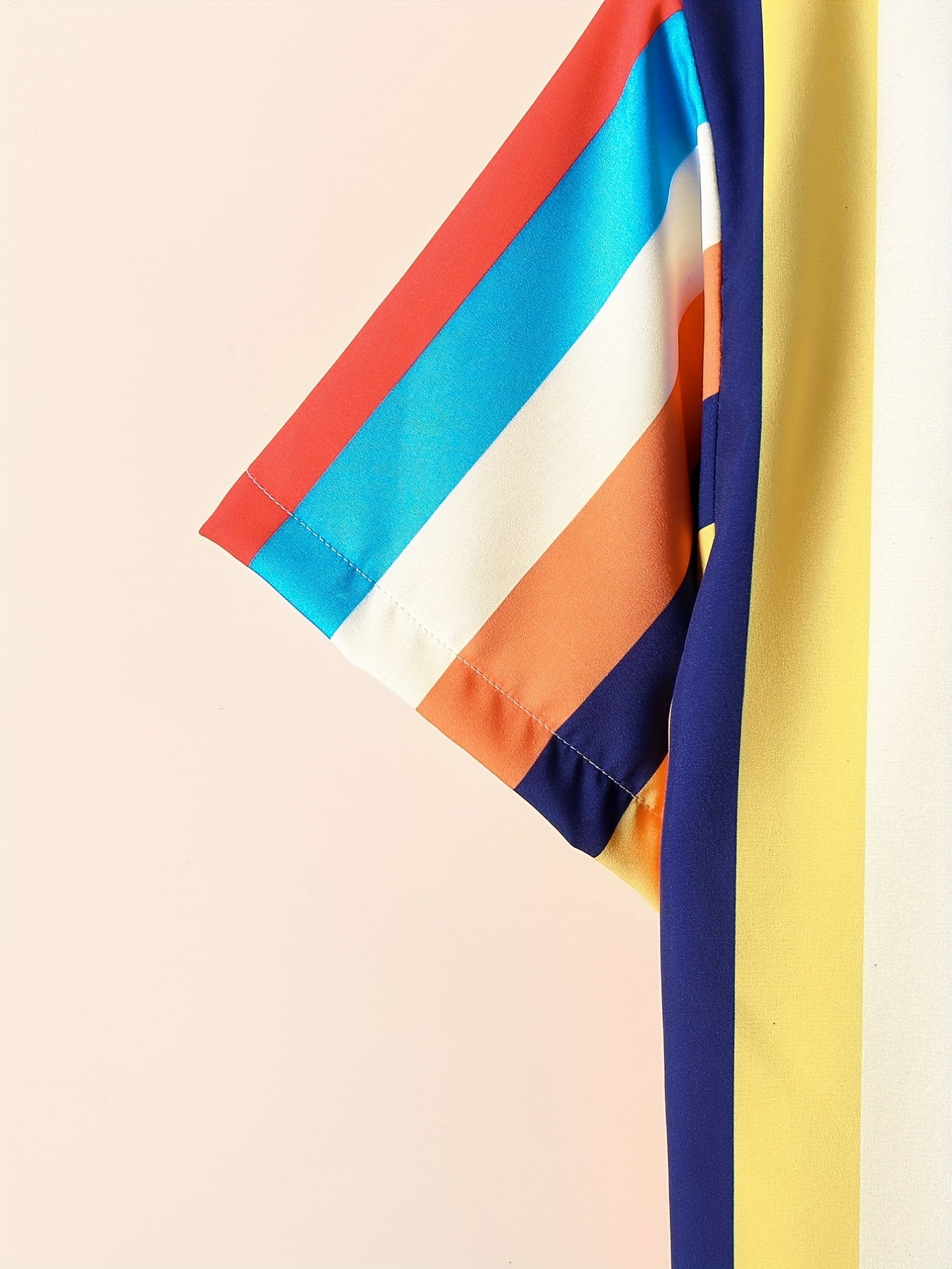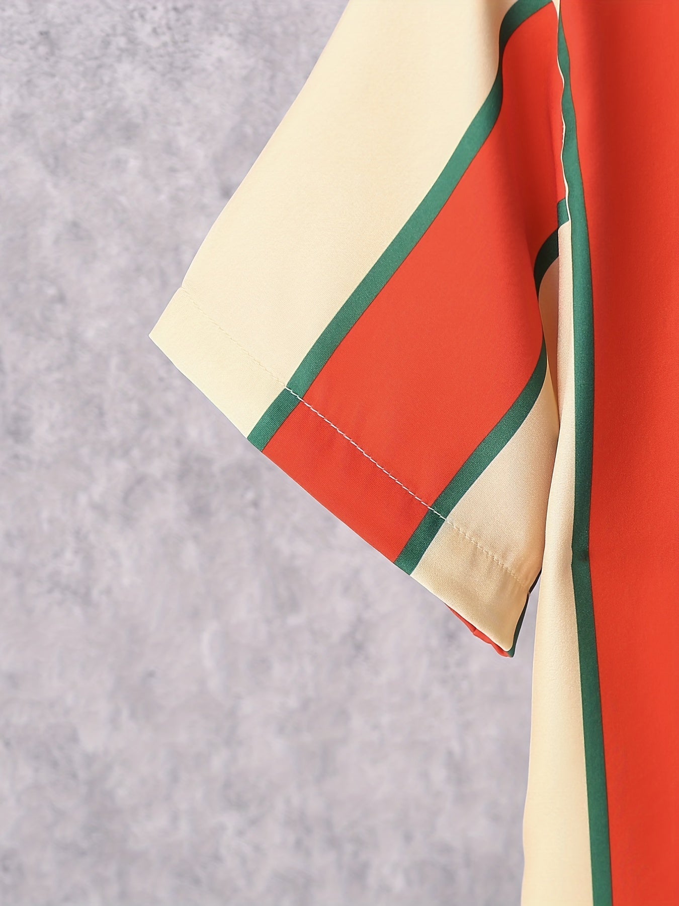 2pcs Boys Teen Casual Striped Short Sleeve Shirt & Pocket Side Shorts Set Clothes For Summer