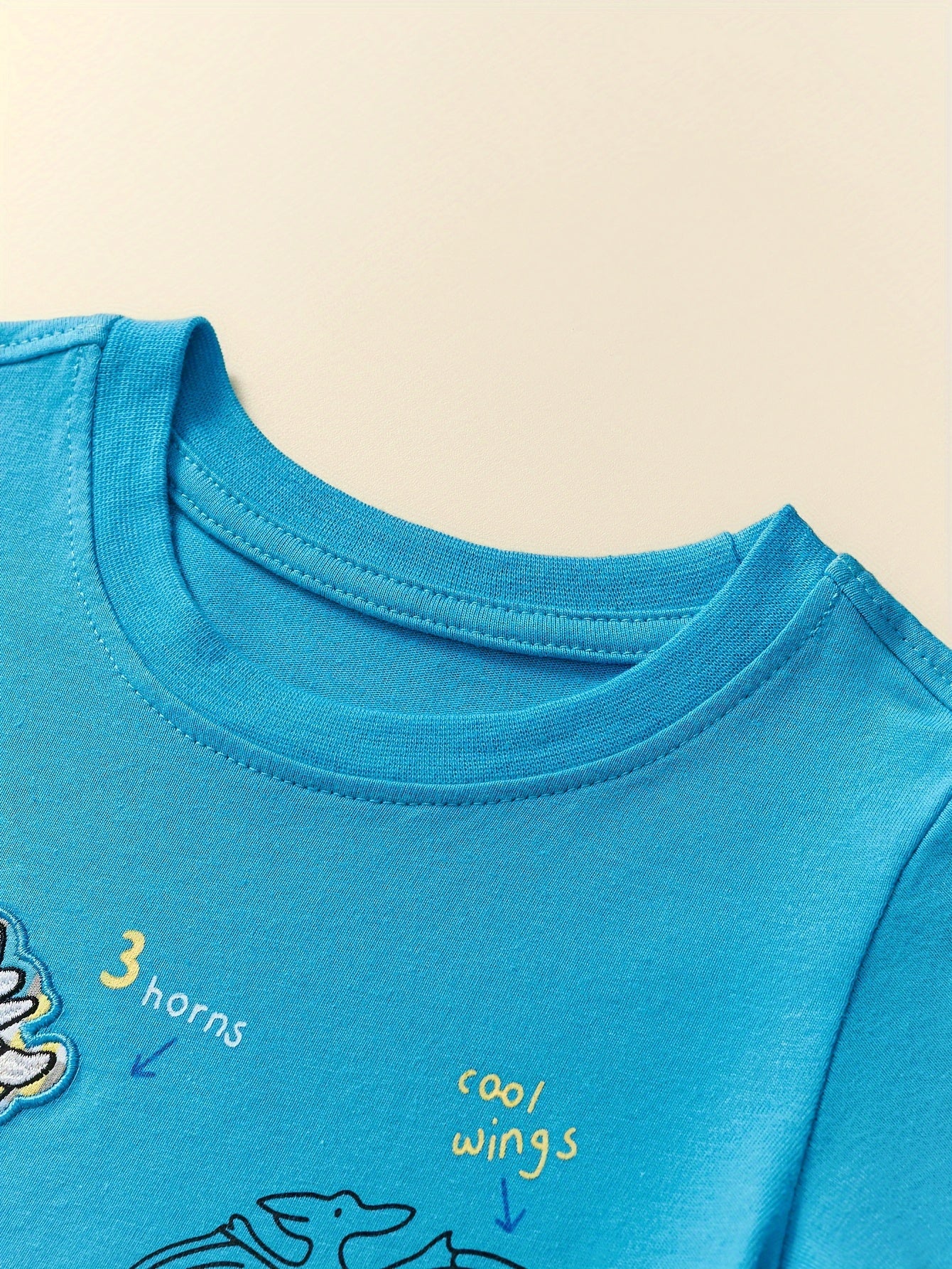2pcs Set Kids Cotton Cartoon Dinosaur Short Sleeves Tshirt & Breathable Comfy Drawstring Plaid Shorts