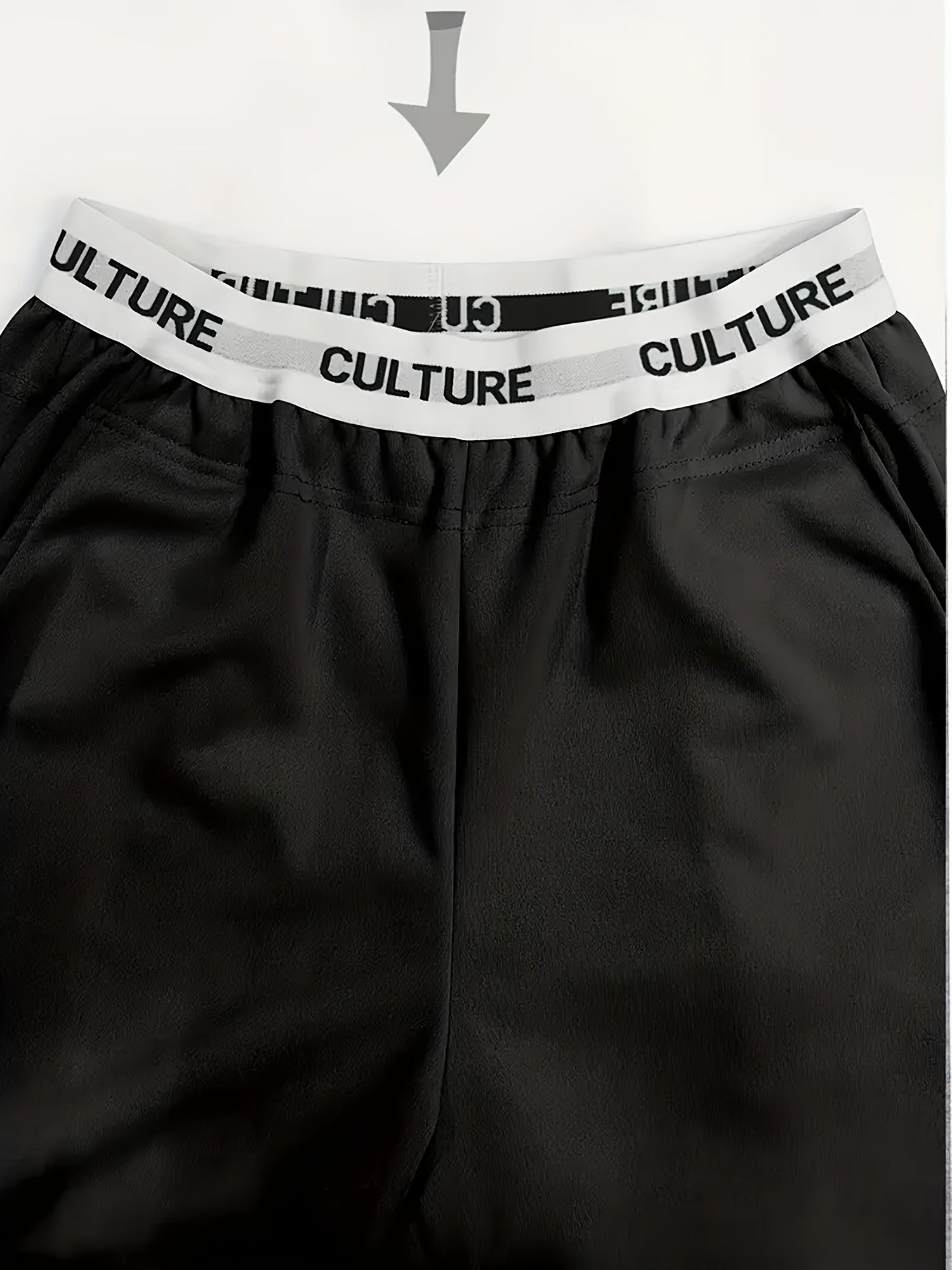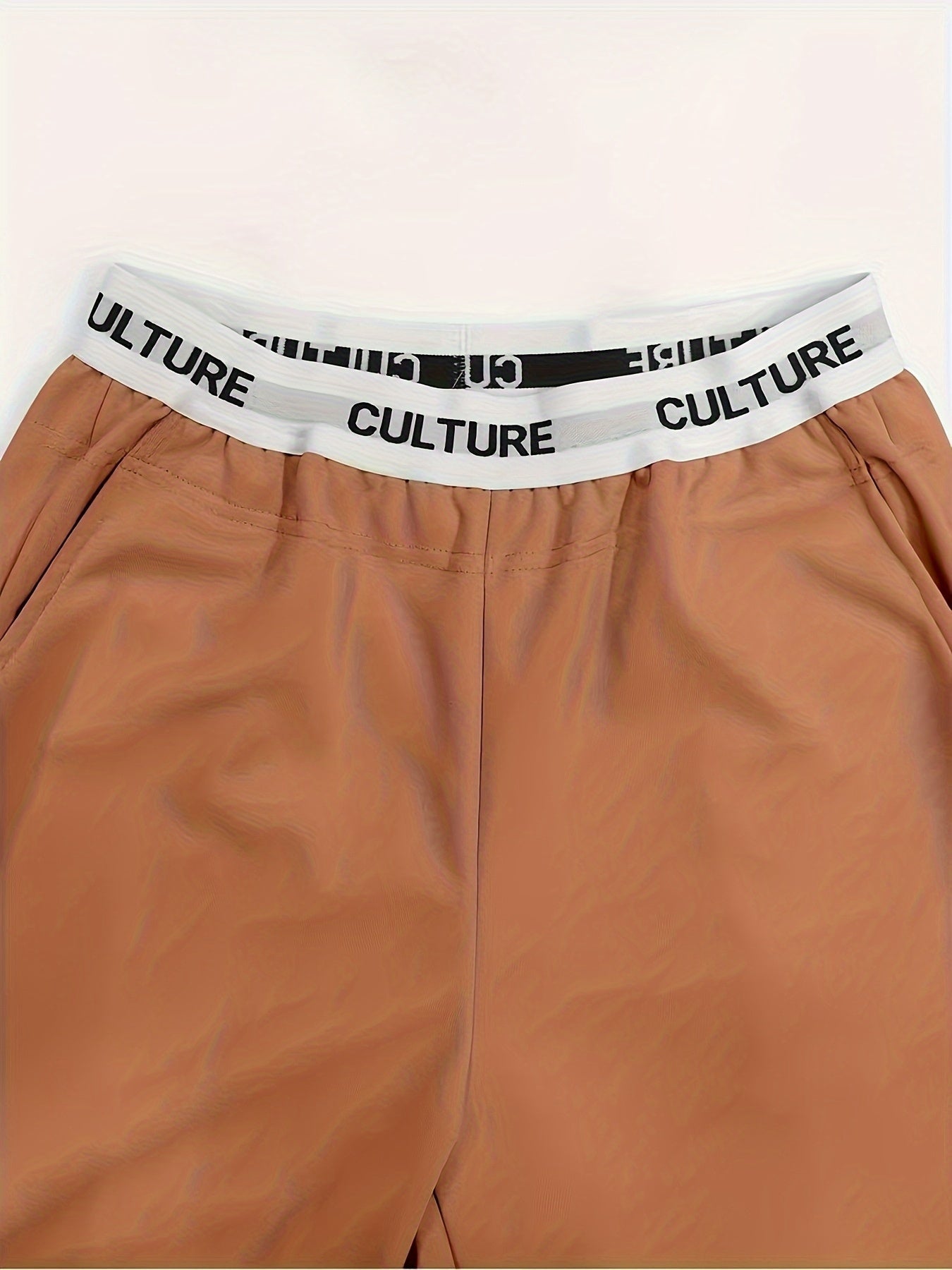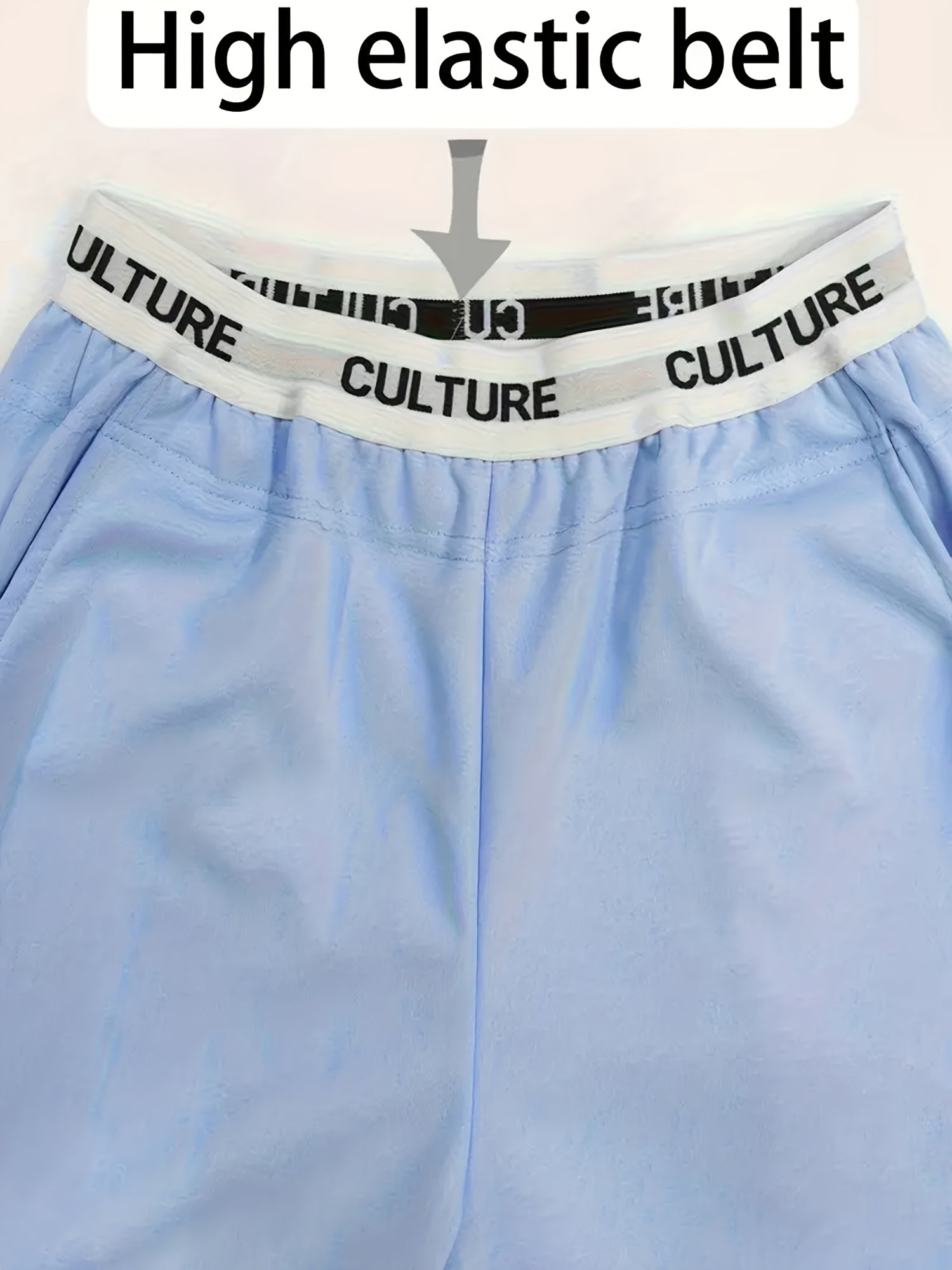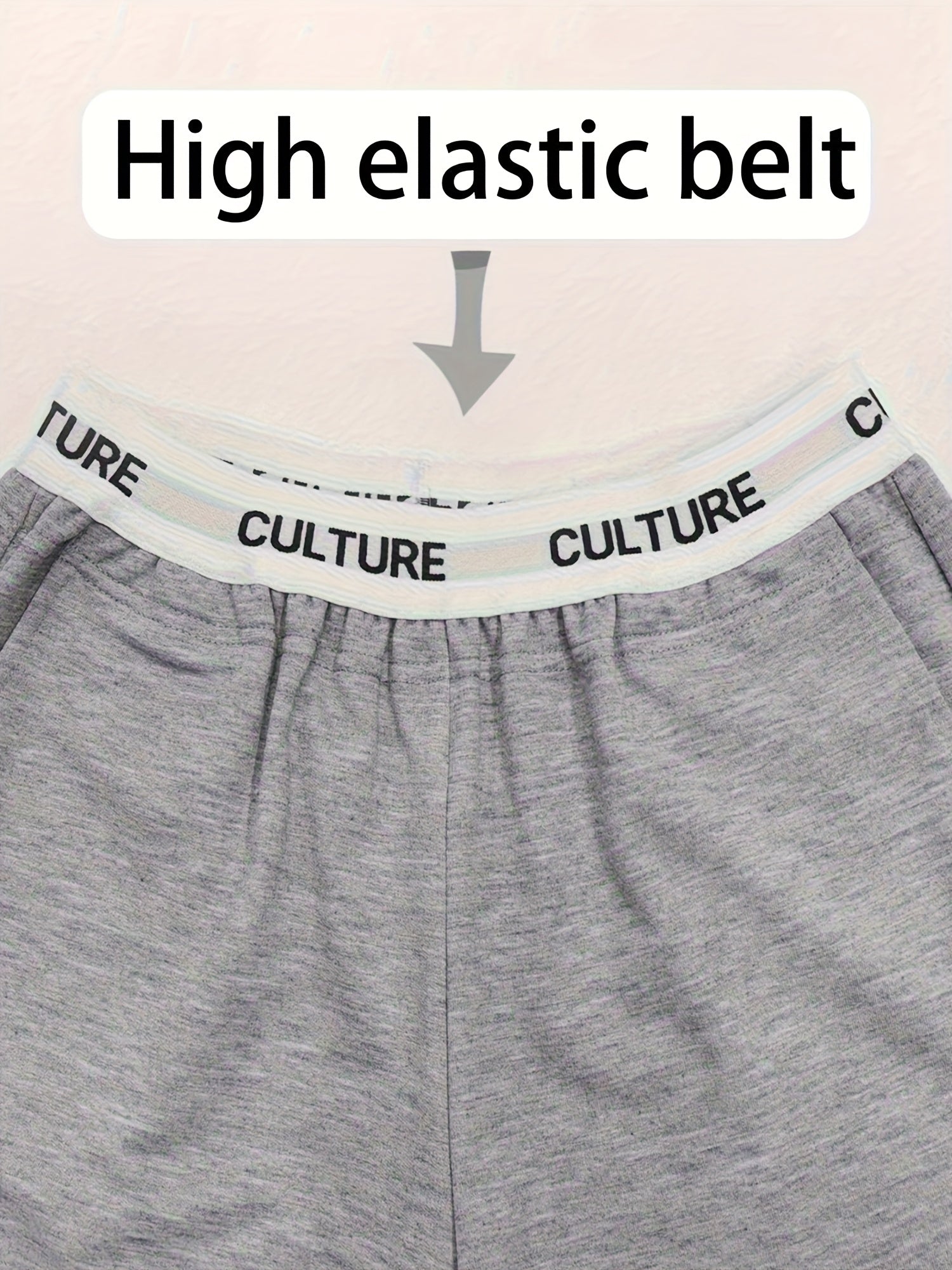 2pcs Women'S High-Waisted Wide-Leg Pants with Heart Letter Print - Casual Loose-Fit Joggers, Solid Color, All-Season Comfort, Pockets, Versatile for Casual Attire