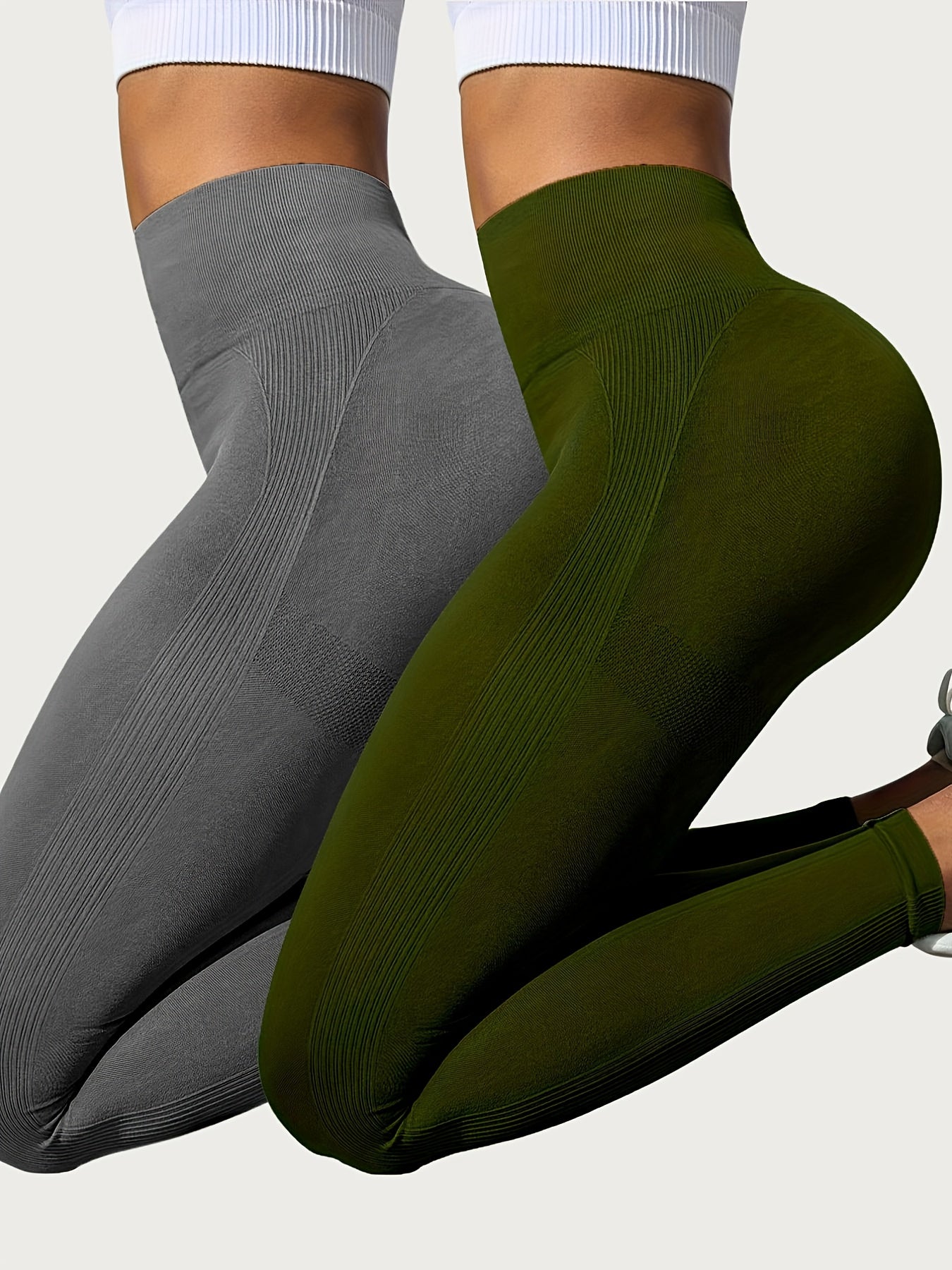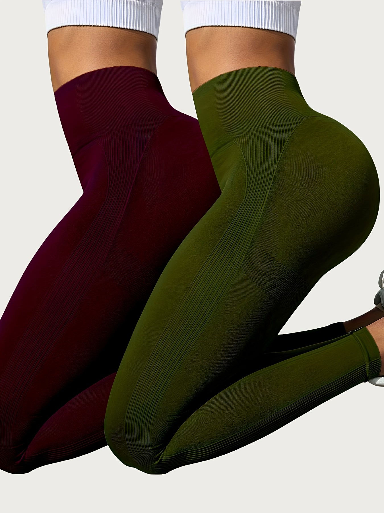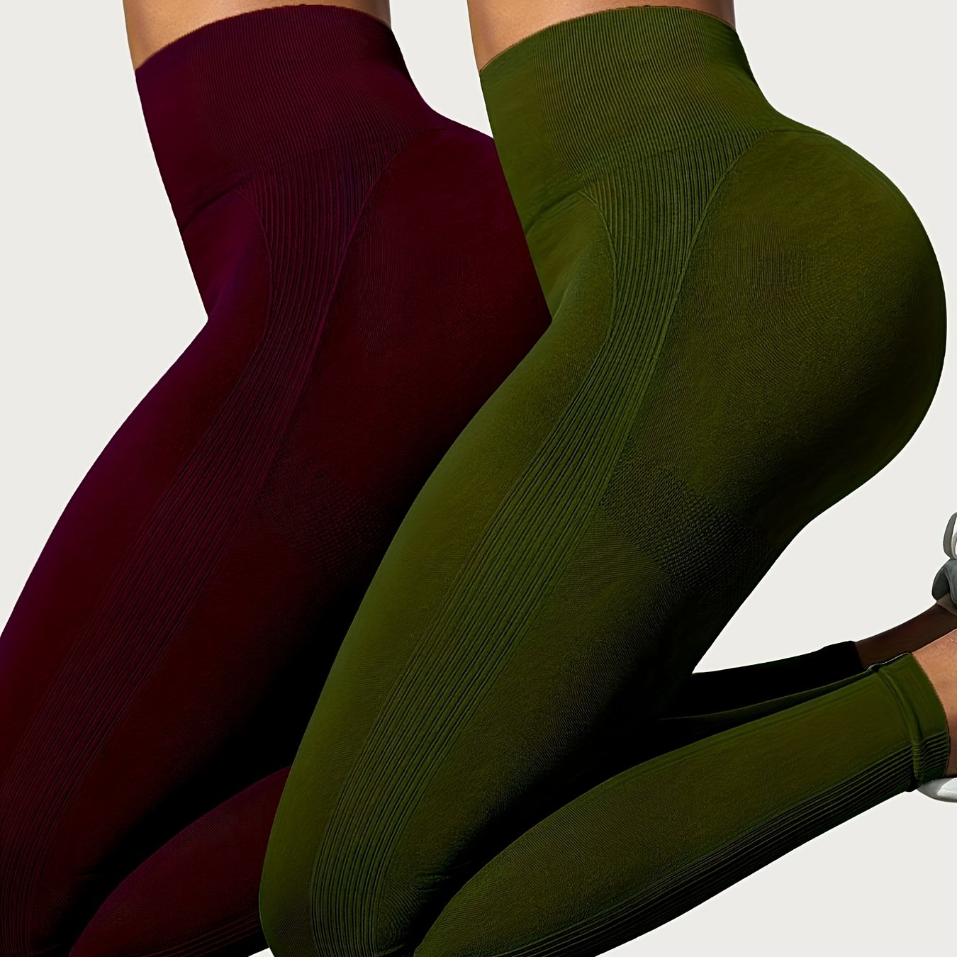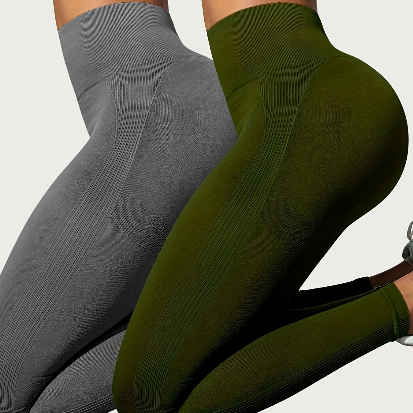 2pcs Women'S High-Waisted Ribbed Yoga Leggings - Breathable, Stretchy, And Comfortable for Fitness & Casual Wear, Solid Color, High Elasticity, Perfect for Spring/Summer/Fall, Workout Leggings | Ribbed Texture | Highelasticit