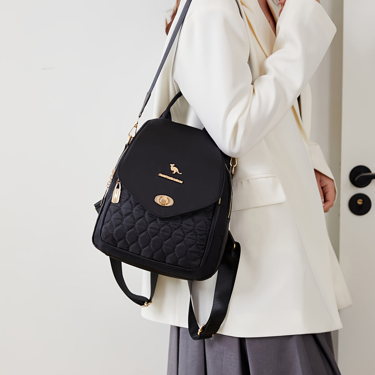 3-in-1 Convertible Backpack for Women - High Quality Nylon with Kangaroo Pocket & Adjustable Shoulder Straps, Lightweight Multifunctional Bag for Commuting, Travel, Work - Easy Wipe Clean, Black