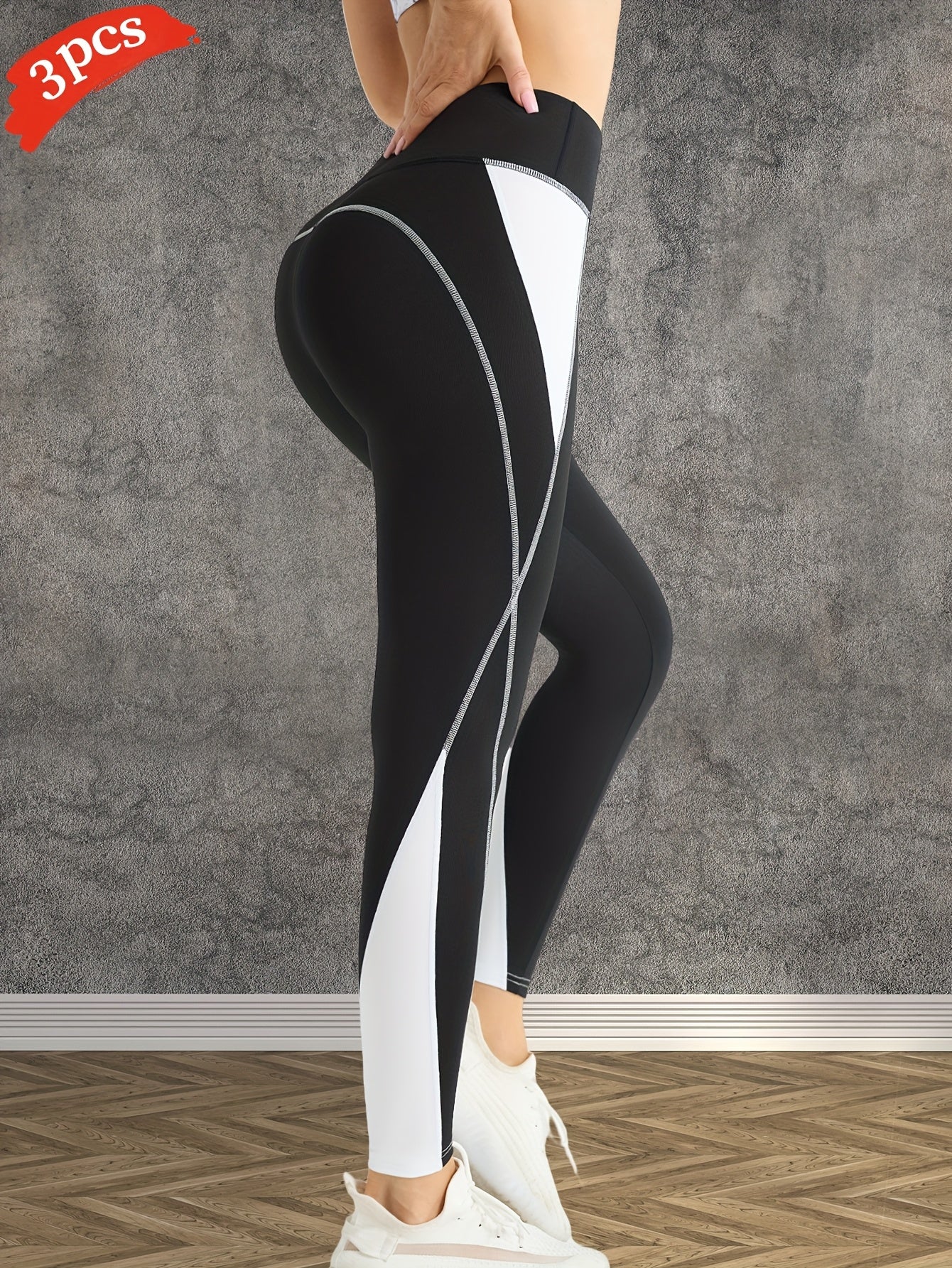 3-Pack Women's High-Waisted Yoga Pants - Tummy Control Butt-Lifting Workout Leggings, Breathable Stretchy Fitness Pants with Color-Block Design for Gym Running Training, Spring Summer Fall Essentials, Seasonal Activewear, Con