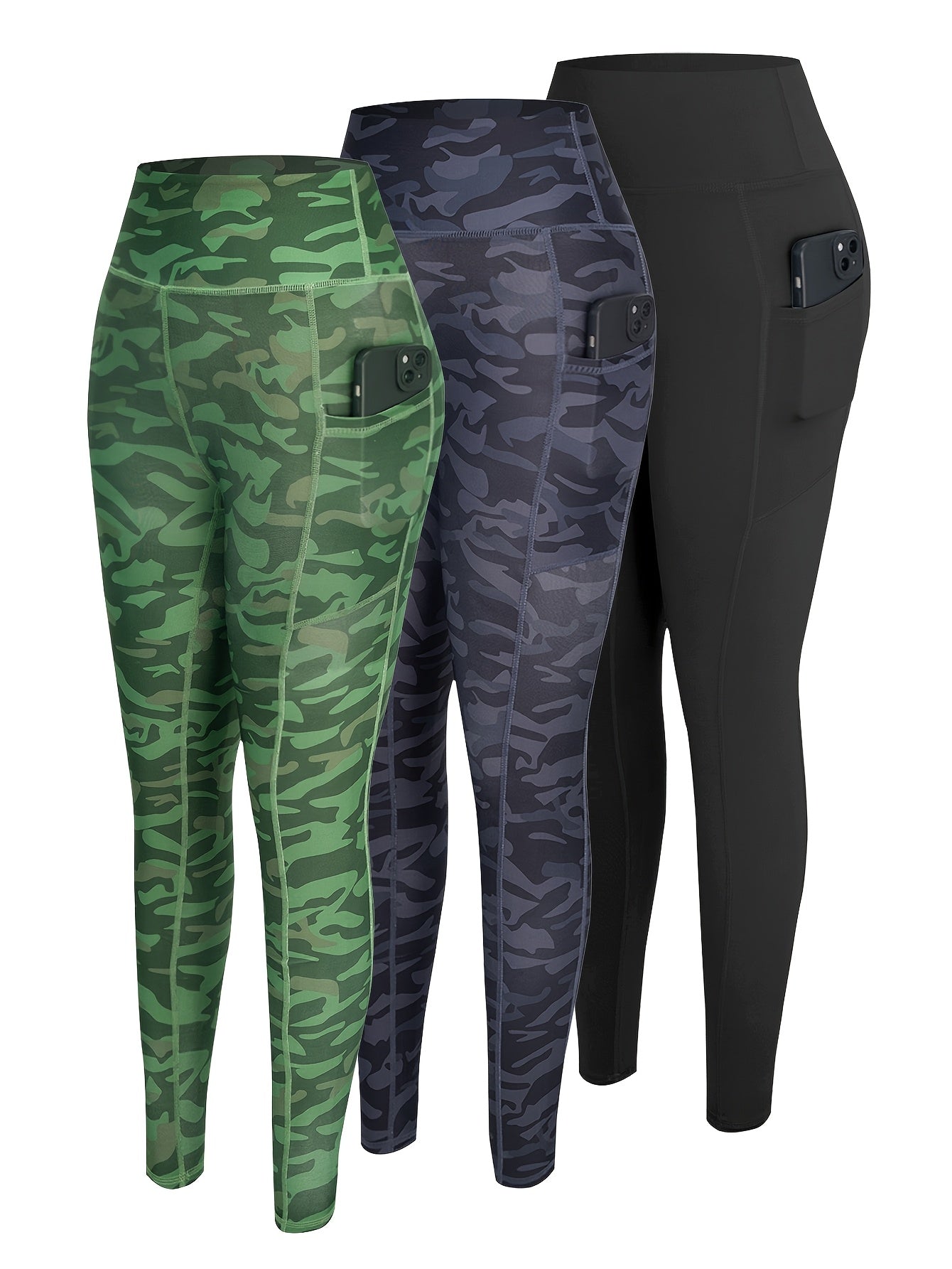 3-Pack Women'S High-Waisted Yoga Pants with Side Pockets - Non-Slip Grip, Stretchy Workout Leggings for Gym, Running, Everyday - All-Season Fitness Pants in Black/Gray/ - Ideal for Yoga, Pilates, Casual Attire, Yoga Leggings,