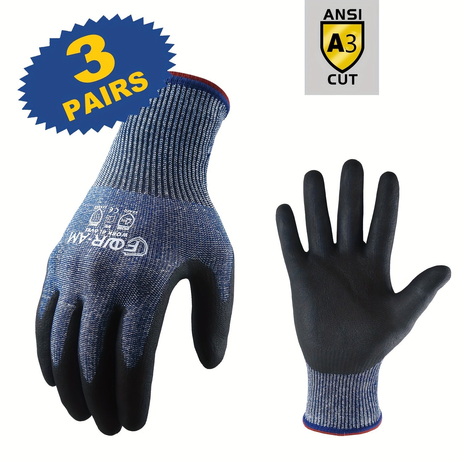 3 Pairs of Level 3 Cut-Resistant Work Gloves with Firm Non-Slip Grip, Durable & Breathable Nitrile Foam Coating, and Touchscreen Compatible 3D-Comfort Fit