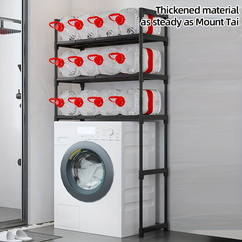 3-Tier Bathroom Storage Shelves with Toilet Rack & Towel Bar – Space-Saving Corner Organizer for Towels, Toiletries, and Laundry Accessories, Black Plastic Freestanding Design for Modern Bathrooms, DOCOXO, Shelves