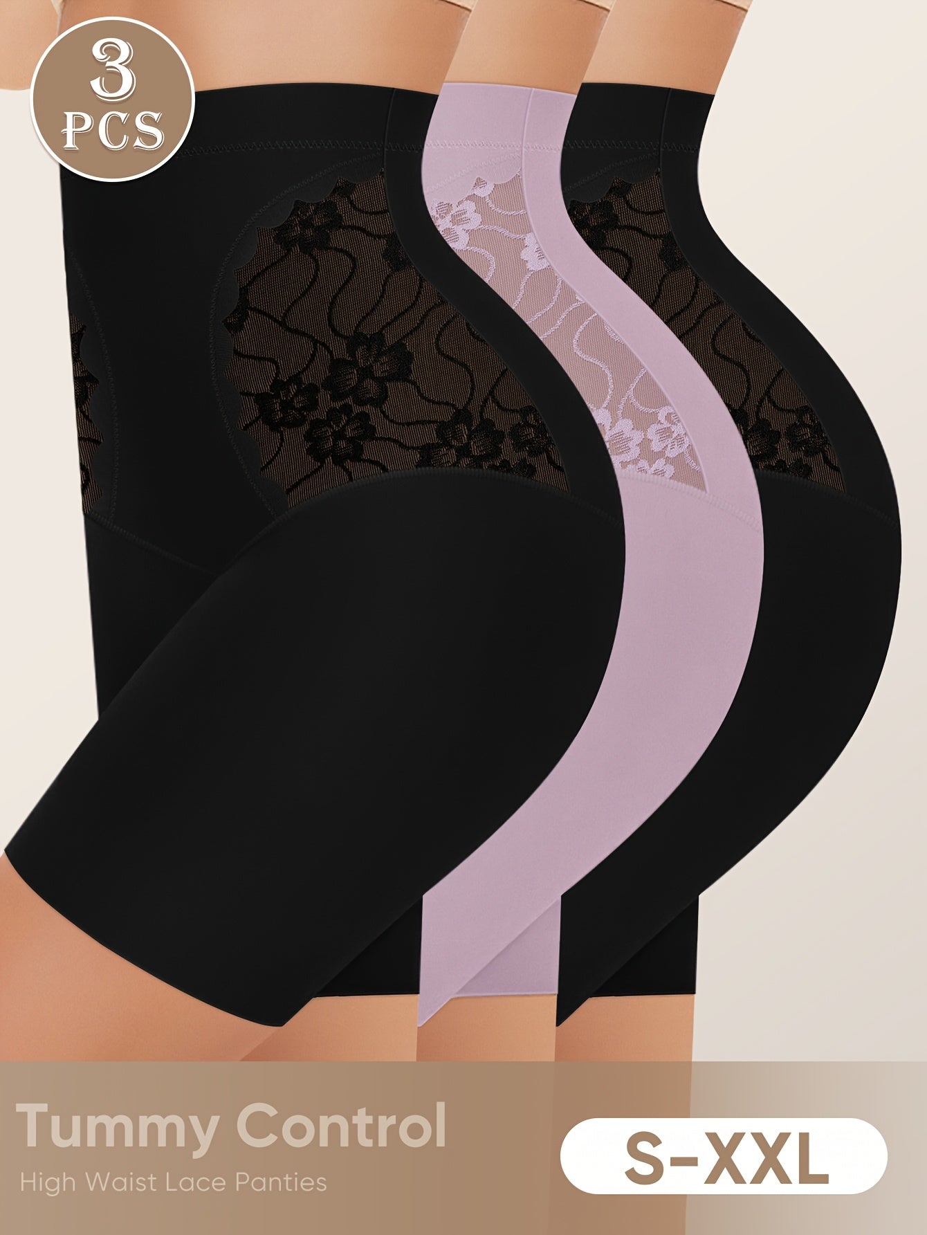 3pcs High-Waisted Tummy Control Women's Underwear, Boxer Briefs, Safety Pants with Mesh Breathable Lace Trim for Summer and Leg Shaping, Seamless Tummy Control Underwear, High Waist Panty, Panties for Women Plus Size, High Wa