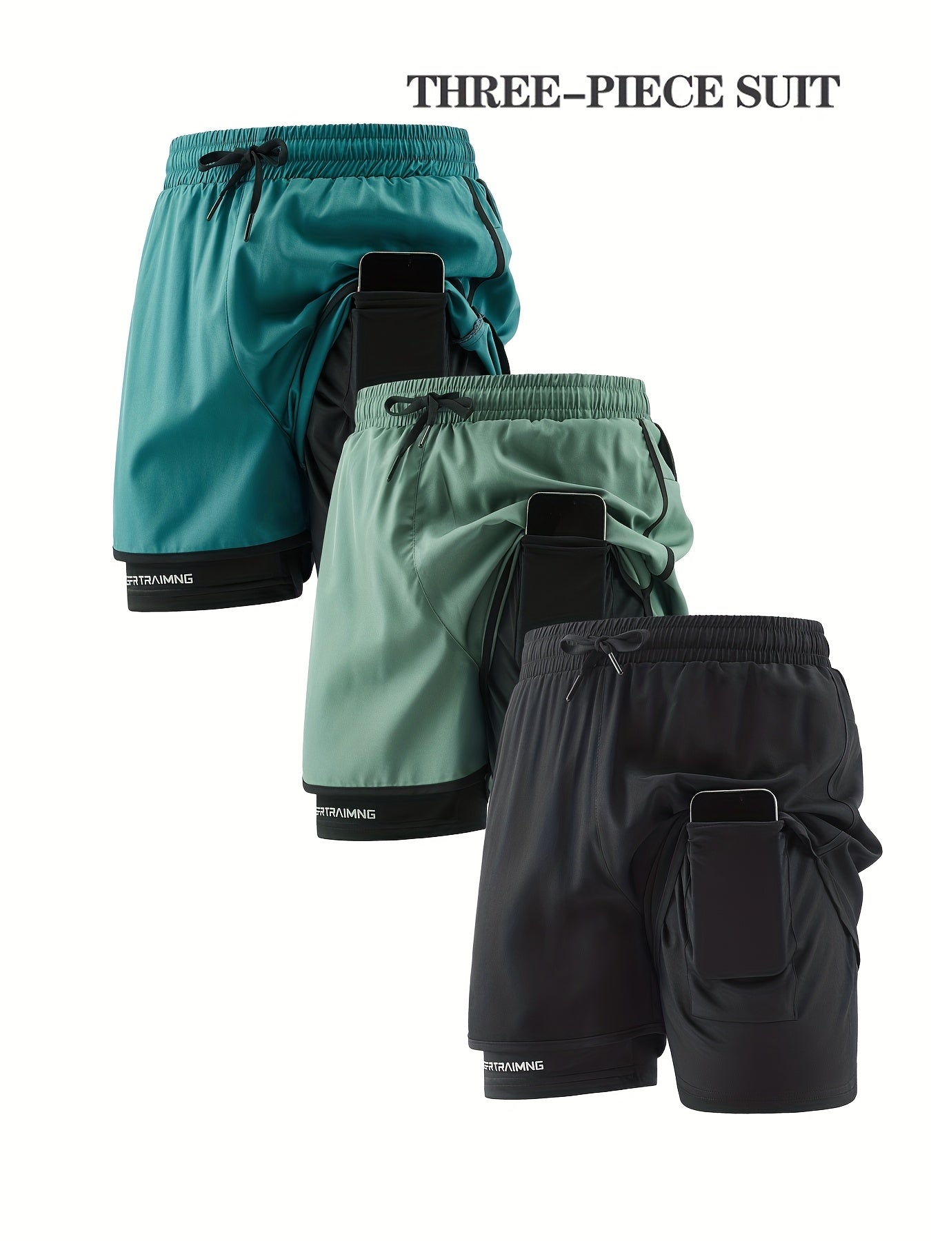 3pcs Men's Quick-Dry Lightweight Running Shorts, with Elastic Drawstring Waist and Side Pockets - Mo, Running Shorts for Men, Mens Mid Length Wide Leg Shorts, Men Workout Shorts, Gym Shorts Above Knee, Mens Shorts with Liner,