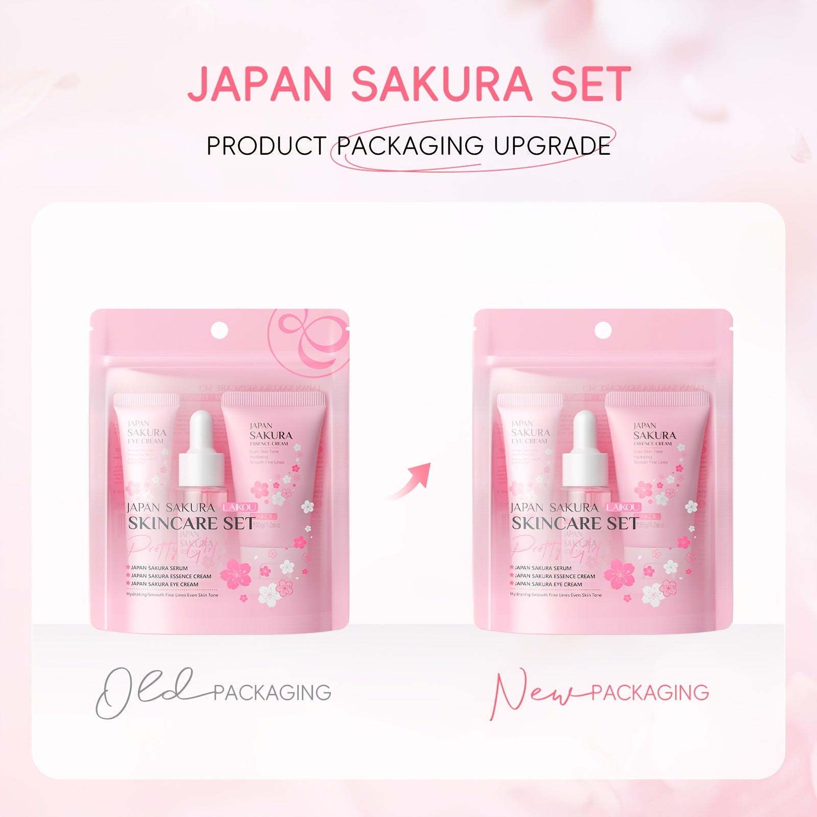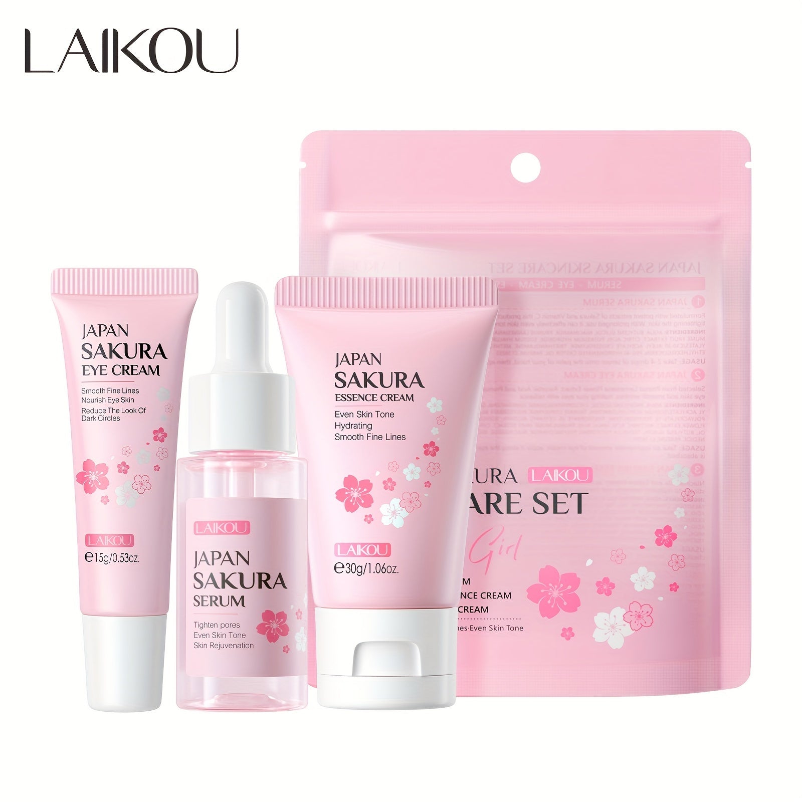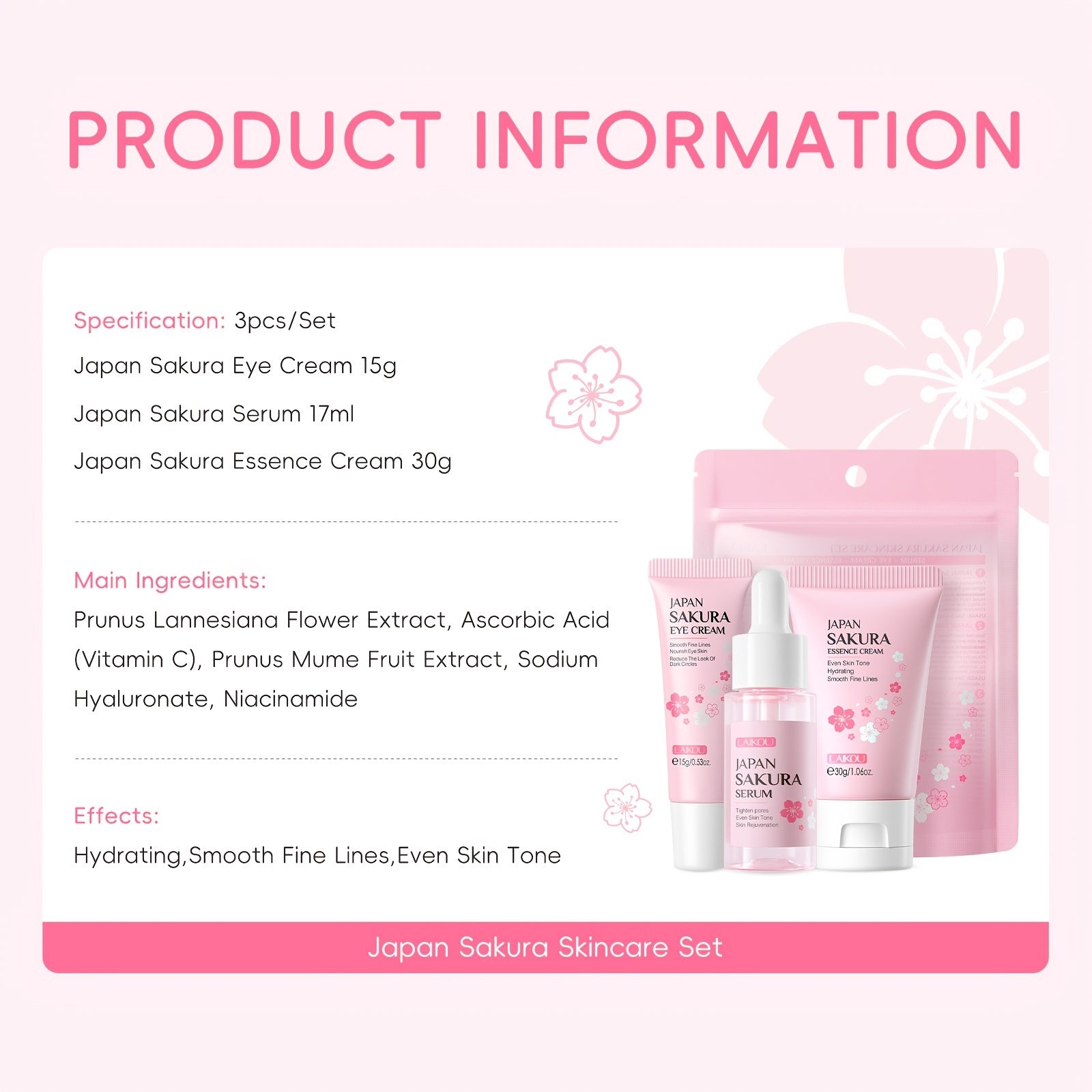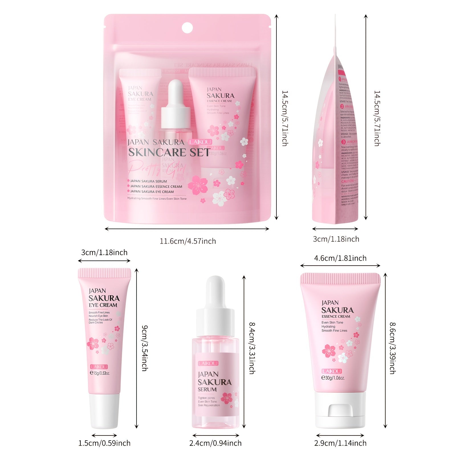 3pcs Set LAIKOU Japanese Cherry Blossom Skin Care Set 3 Piece Serum Liquid Eye Cream Face Cream Skin Care Kit Gifts
