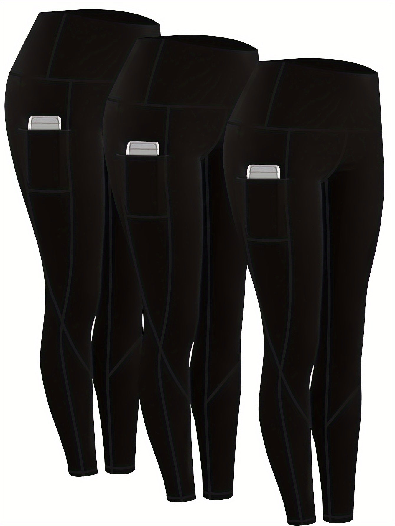 3pcs Set Women'S Plus Size Daily Sports Yoga Leggings, Geometric Pattern, High Stretch Spandex, Breathable, with Two Side Pockets, for Running, Workout