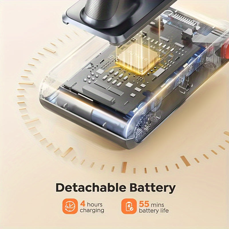 46000Pa/55Min Vacuum Cleaner Cordless, Cordless Vacuum Cleaner Super Quiet, Powerful Cordless Stick Vacuum Cleaner with LED Display/Anti-Tangle Brush, Detachable Battery, Lightweight 1.5L Dust Cup Perfect for Pet Hair, Floor,