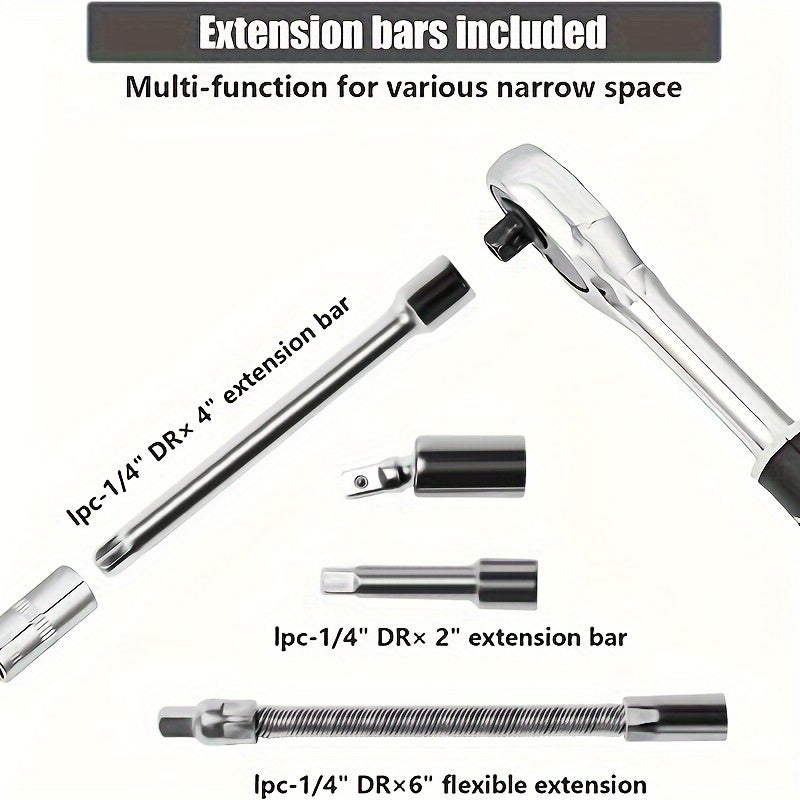 46pcs 2.54/10.16 Cm Drive Socket Ratchet Wrench Set, With Bit Socket Set, Metric And Extension Bar For Auto Repairing And Household, With Storage Case